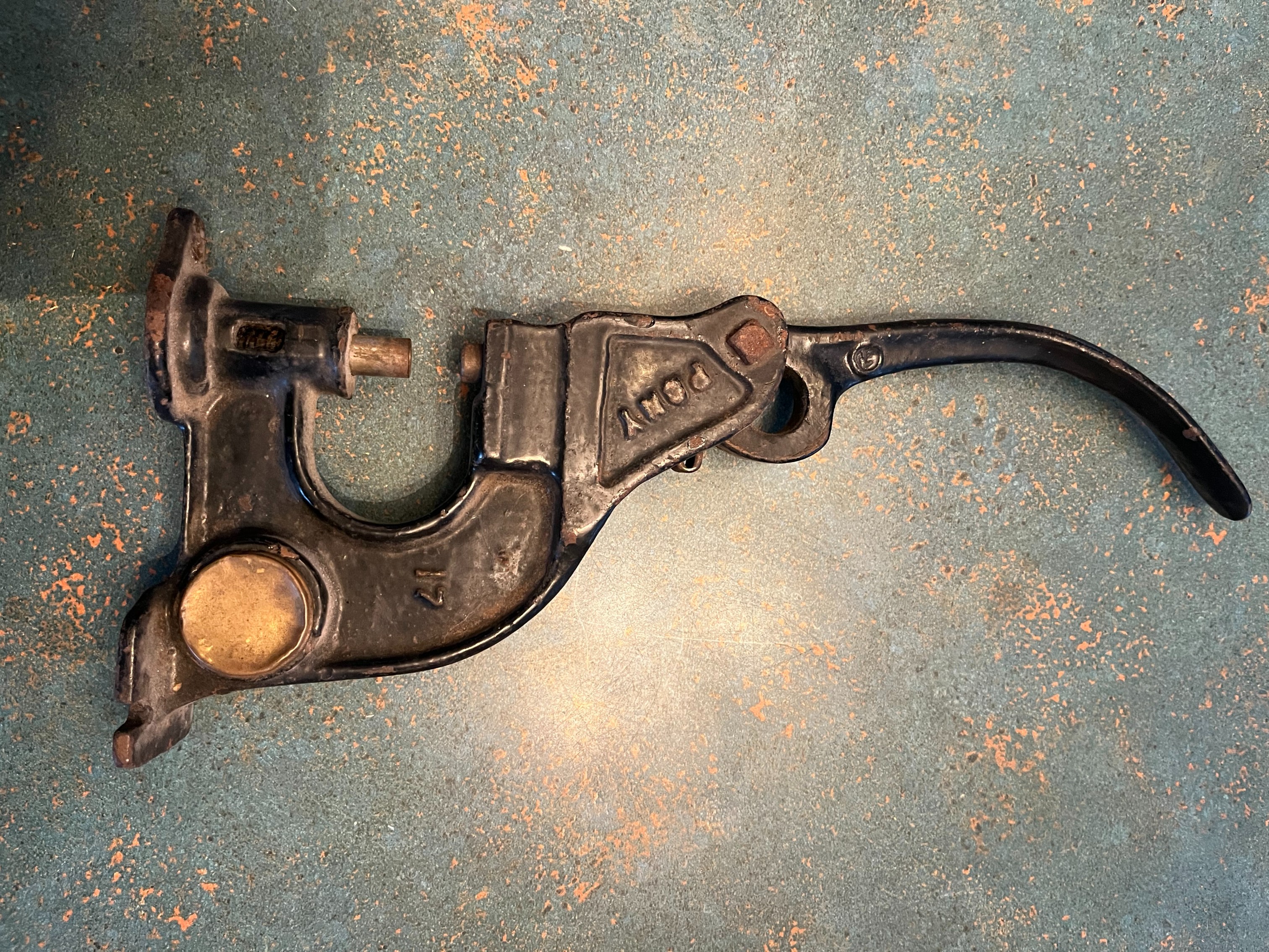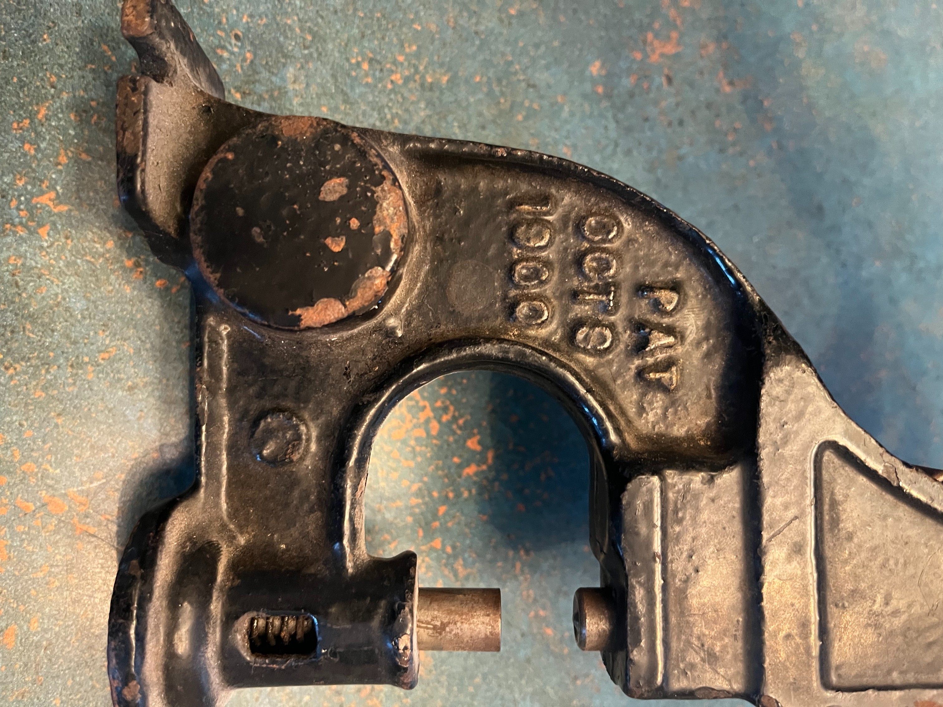 I think I found what Rick was referring to as far as a rivet press. This belonged to my grandfather, who like I mentioned before was an old horseman. Perhaps this is what he meant when stating he set the rivets by hand. Now if I can just find the jar of rivets, Hmm.