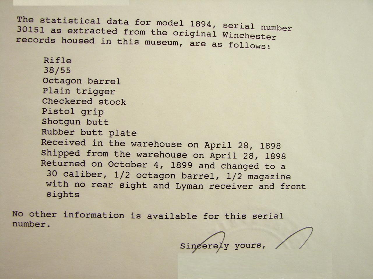 Exactly… a Model 1894 that was reworked (rebarreled) by Winchester and clearly documented. You have a very nice factory “original” Winchester