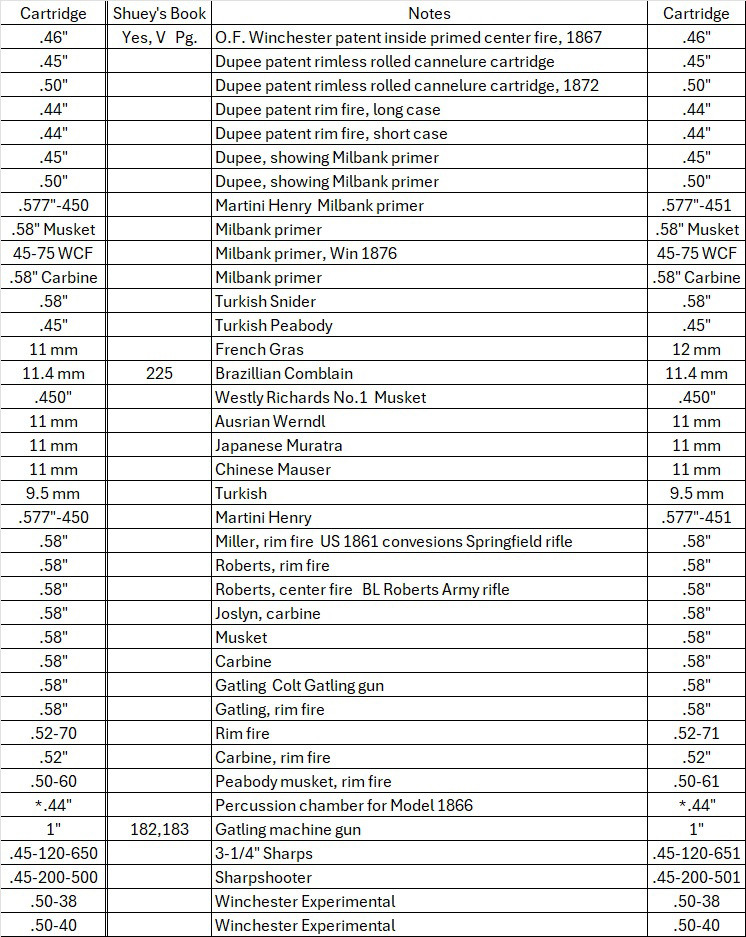 OfflineWhen I decided to try and collect all the WRACO head stamped cartridges with the copper or brass primers for the pre 1898 Winchester Models, I started a list. The first years of production, 1873 to about 1878, there were no head stamps. So there are none of these in Shuey’s book. Like the extremely rare 44 WCF Millbank primed and the 45-75 Millbank primed.