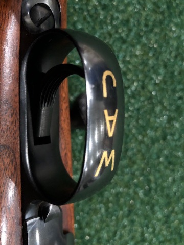 Out of curiosity, do the gold inlaid initials stand out above the surface of the metal or are they flush. The attached photo is of gold inlaid initials on the trigger guard of a documented 1948 factory special order M70 ordered by Dr. Russell C Smith. These initials stand above the level of the metal. I don’t know if that was a standard practice, but that is how the Winchester factory did it in ’48.