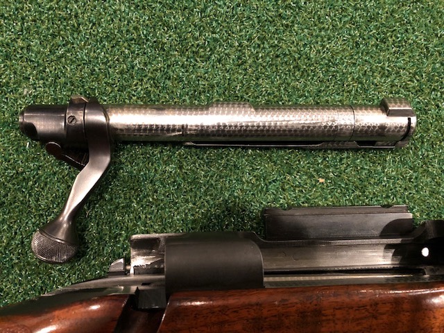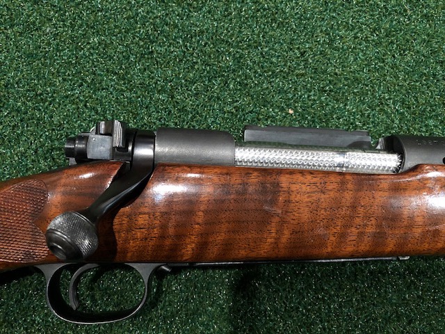 OfflineReally need some more pictures showing entire rifle, stock, bolt, buttpad etc. to make a more accurate assessment. That said, I am going to go out on a limb and say the rifle was modified subsequent to leaving Winchester, possibly G&H? I would at least contact them and see if they have records on the rifle. Since I answered some questions on this prior to the post, I know the s/n and it is an early 1950 rifle. Seem’s to me the rifle should have a molded rubber grip cap instead of the later steel style. Also, the engine turning does not look like Winchester work. The engine turning on the receiver adjacent to the magazine follower and at rear right hand flat, is not consistent with Winchester Super Grade work. Engine turning was not standard on Super Grades until later in production. I do find the gold inlay on trigger guard interesting, in that I have a 52C Sporter that was built for John Olin which has very similar inlay on trigger guard, with his initials. This would have obviously been a special order rifle if done at Winchester, and I would imagine any of the noted concerns could have been done by them for a price.