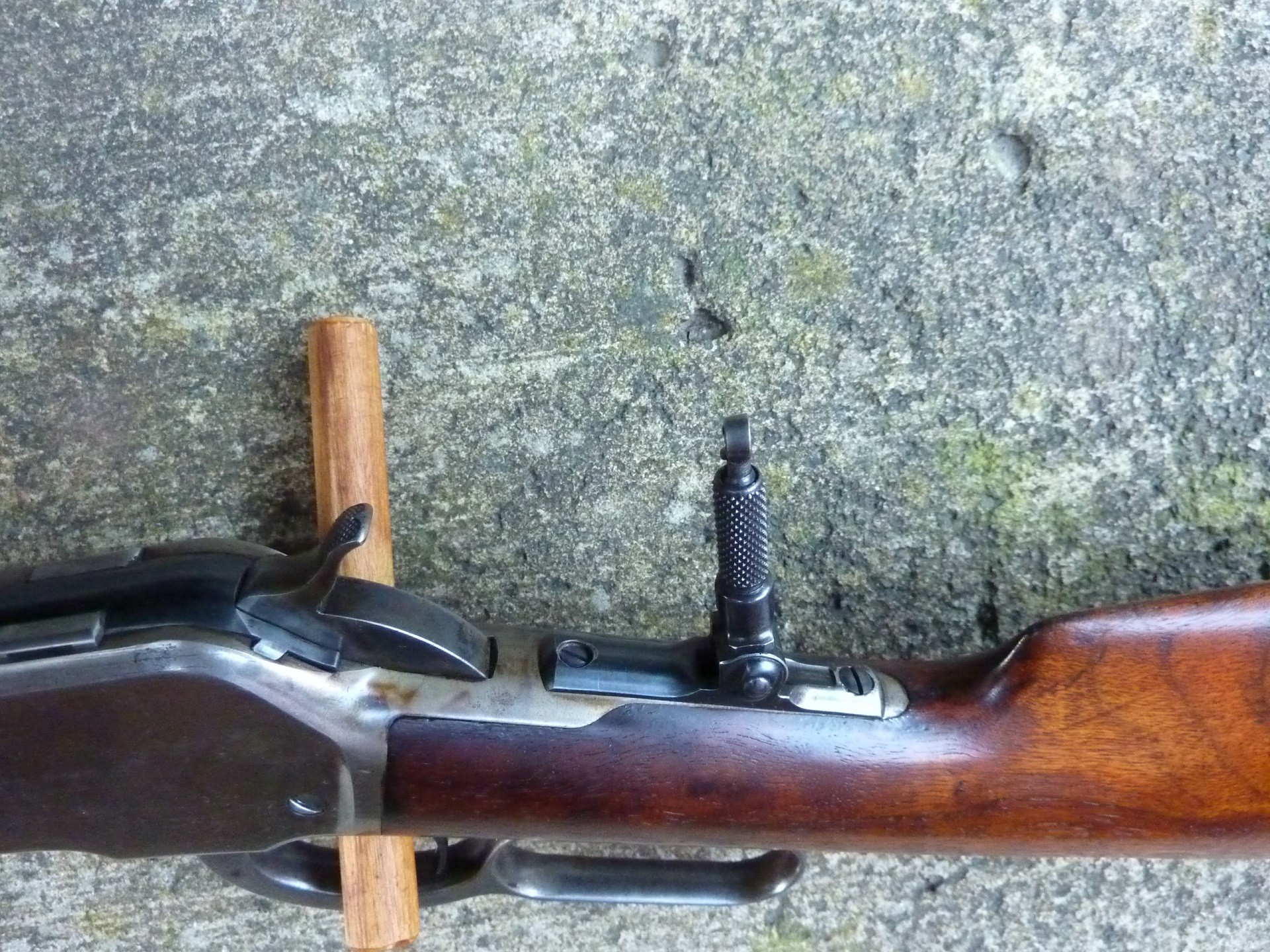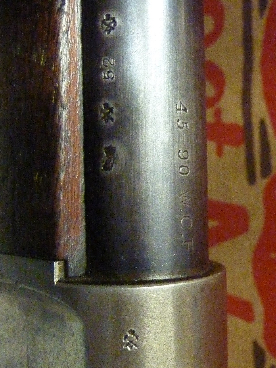 Yours looks like a brother to mine–also in 45-90. It has British proofs and is in the same configuration. It has a Lyman tang sight as well. Is your serial number close to mine?