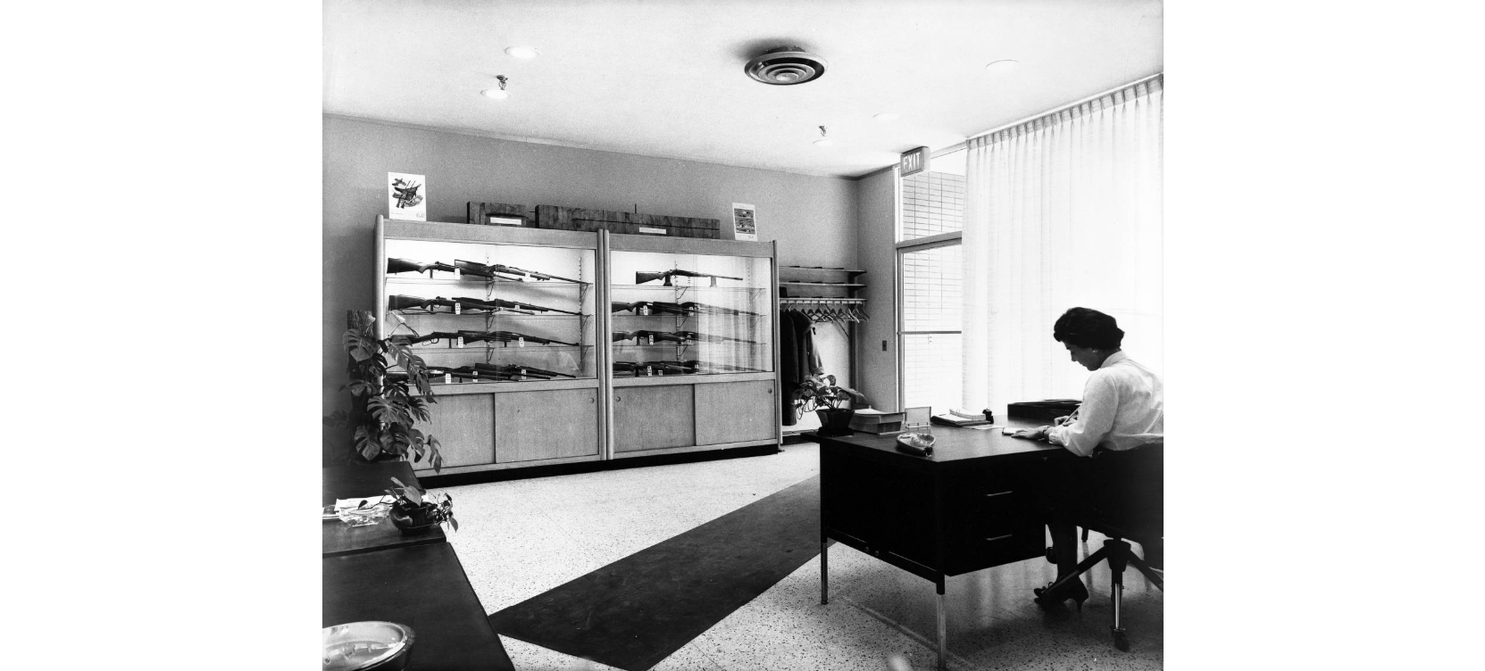 There is a interior photo of the Winchester Museum when it was in New Haven, CT of the entry lobby with the secretary at her desk. On top of a display cabinet is one of these advertising display penetration boards. From the photo they don’t appear to be spaced and look to be held together with four rods, one in each corner and threaded through them.