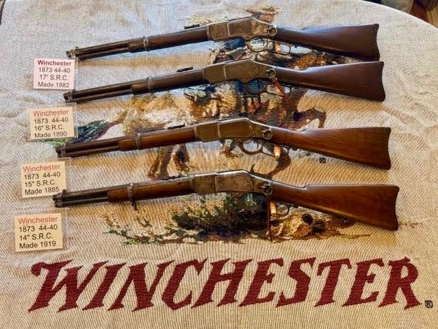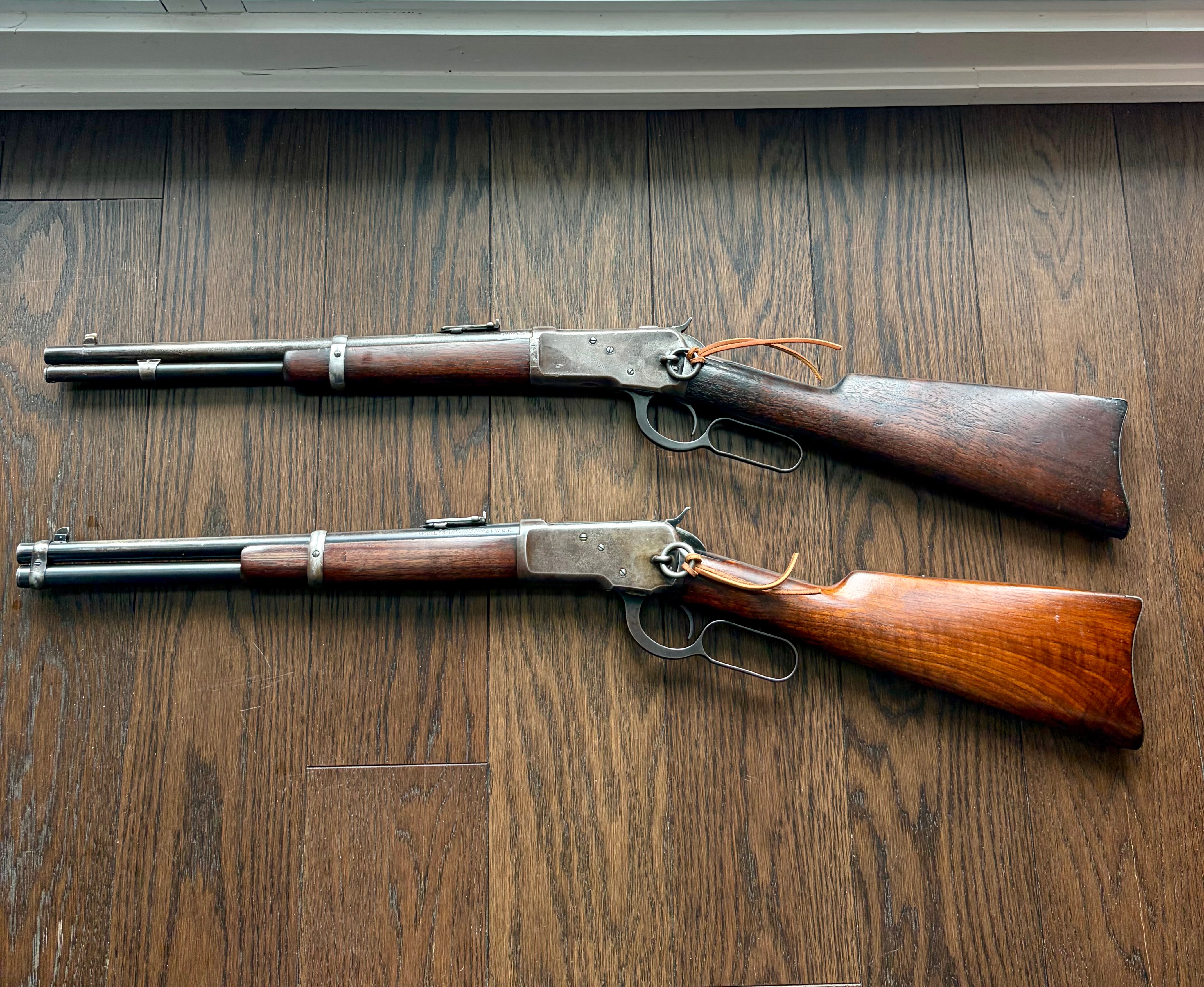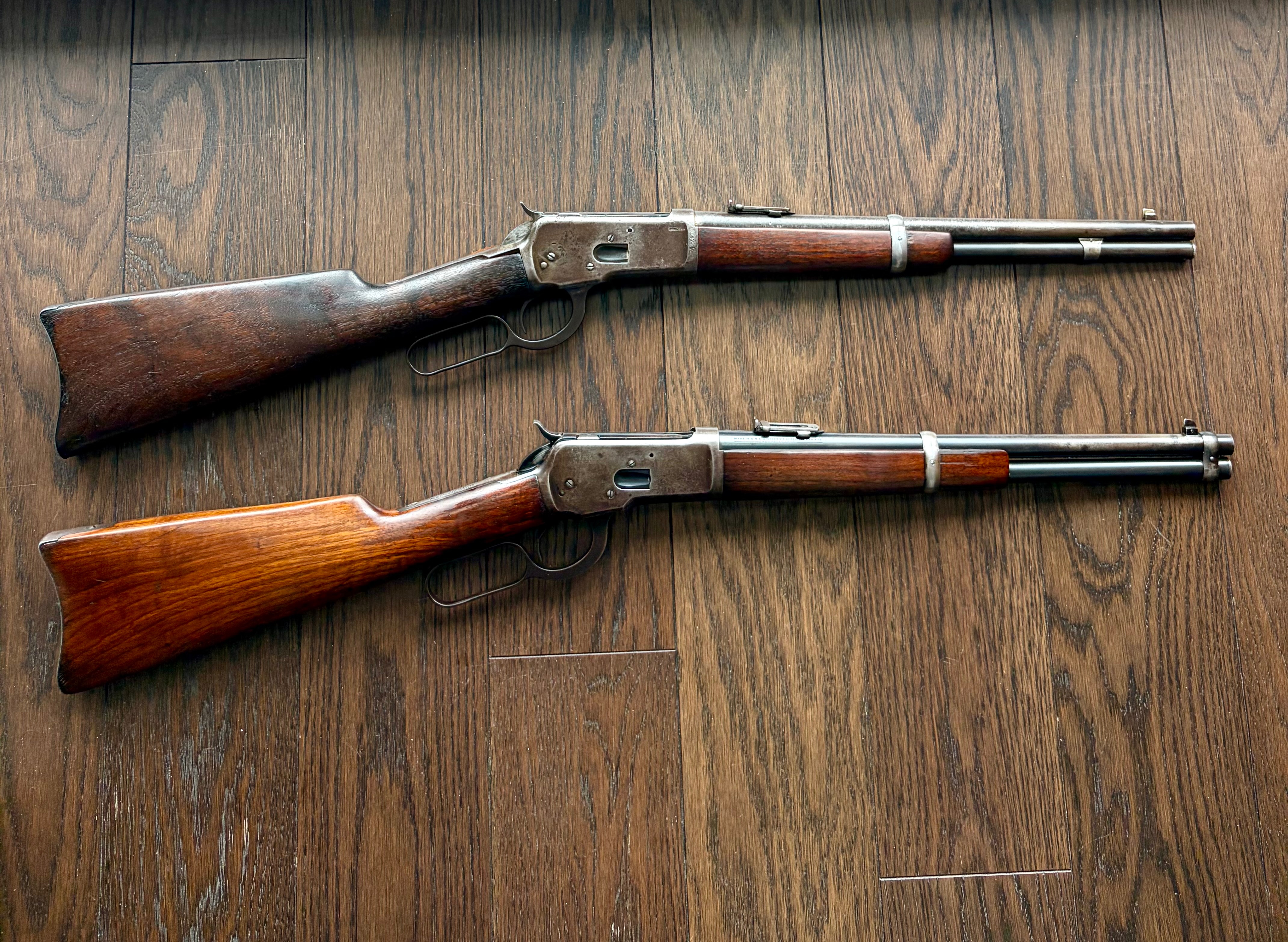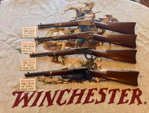 Well , to the best of My knowledge the term “trapper” , or “baby” was invented by some one in the gun community. If You got a factory letter for one , it would say, “carbine, barrel length 15”, not “trapper” and “half magazine”, not “baby”. But again in all practicallity the term “trapper” is easier to speak and does present a certain picture. If I were to be stuck in the wilderness with the choice of 1 firearm, it would be a 14″ or 15″ short s.r.c.. I am not a hunter, but if You ever carried one of these short guns, You would understand why so desireable , not only by trappers, but seal hunters , south American mounted police etc. These little guns were so light and versatile, especially being a repeater and a s.r.c. . Being a repeater one had multiple shots at an animal, or. , and being a s.r.c. one could hang it on a belt or sash, like a pistol and could be accessed and used with “one hand”, plus had the reasonable range of a short rifle for 2 handed use. Much the same can be said for the mounted horseman. I don’t know how many Winchesters seal hunters carried, I do know of 2 , both 1892’s in 32 cal.,that I seen, but a short, usually sawed off smaller caliber gun was used, and any I’ve seen were “very well” used and beat to snot, I call them canoe paddles. They are the perfect firearm for carting around through the bush and swing around so quickly to get that quick shot off. I just never understood why they never got more popular than they did, back in the day, however that’s a good thing for We collectors Who love these little guns, and finding an example in fine original condition is quite an undertaking.