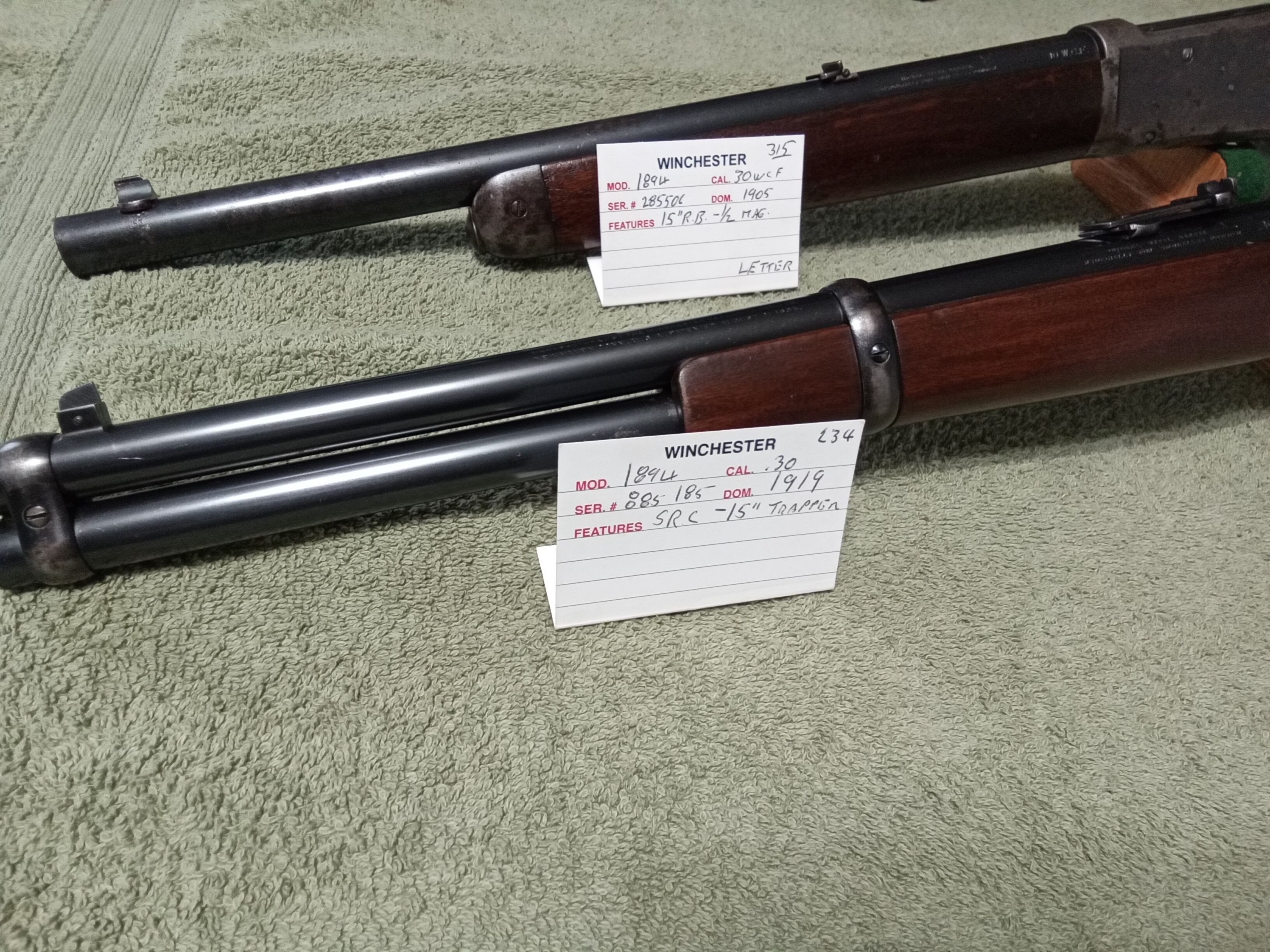 OfflineAs most of You know I am very partial to the “trappers”. By comparison here is a 15″ “trapper” carbine and a 15″ short rifle , I just find the carbine more asthetically pleasing, (to My eye), in proportion etc. compared to the short rifle. Even though the short rifle is far more rare, (1 of 13), than the carbine, ,(1 of 272), letterable, I still prefer the looks of the carbine. I have the history and factory letter for the short rifle, see Winter 2025 W.A.C.A. magazine, but the carbine is to late to letter, but is 100% correct. In this case the rifle was carried and used in the rugged environment of northern Canada while the carbine spent most of it’s life in a gentleman’s gun room in Wisconsin.![]()