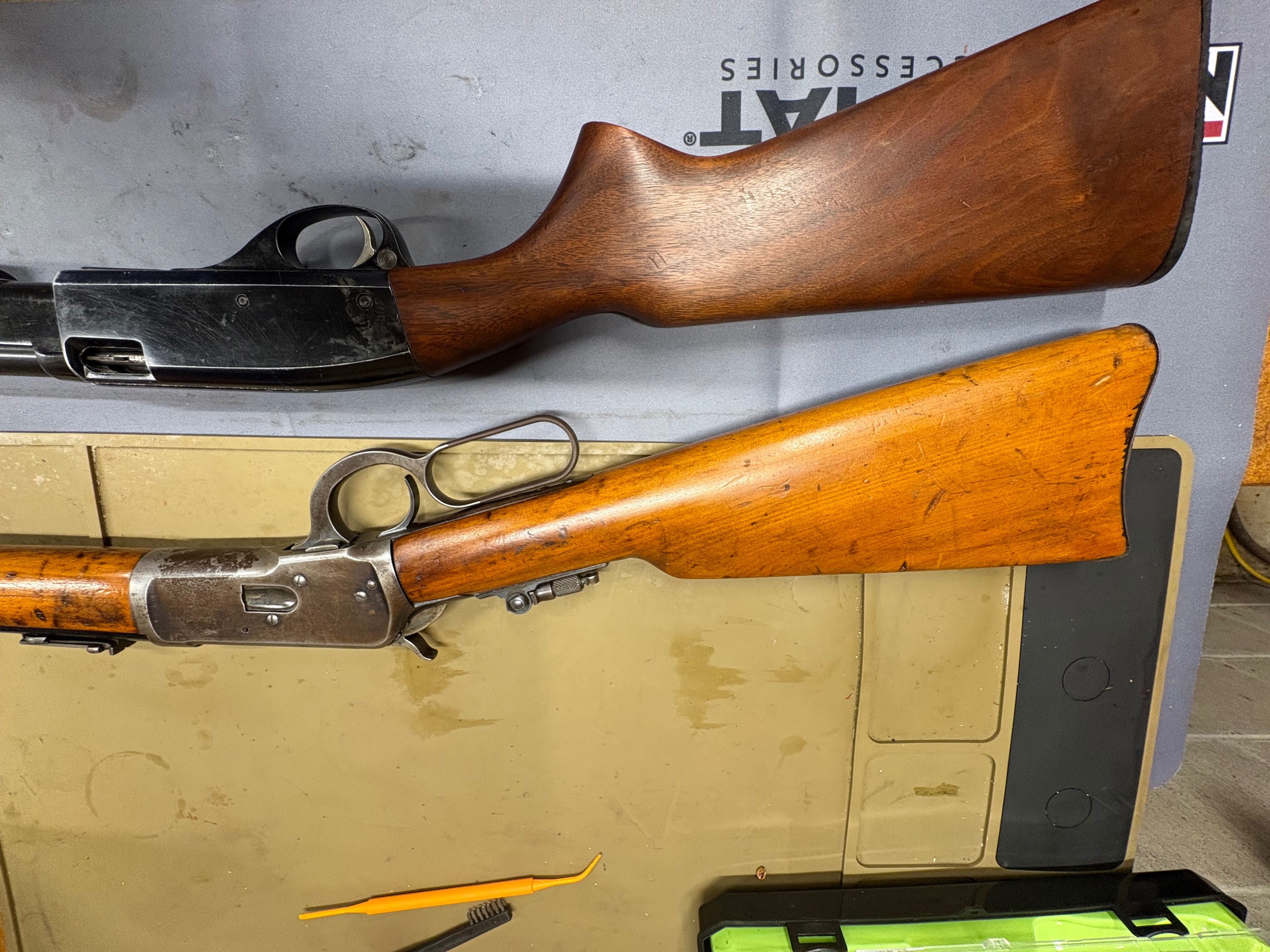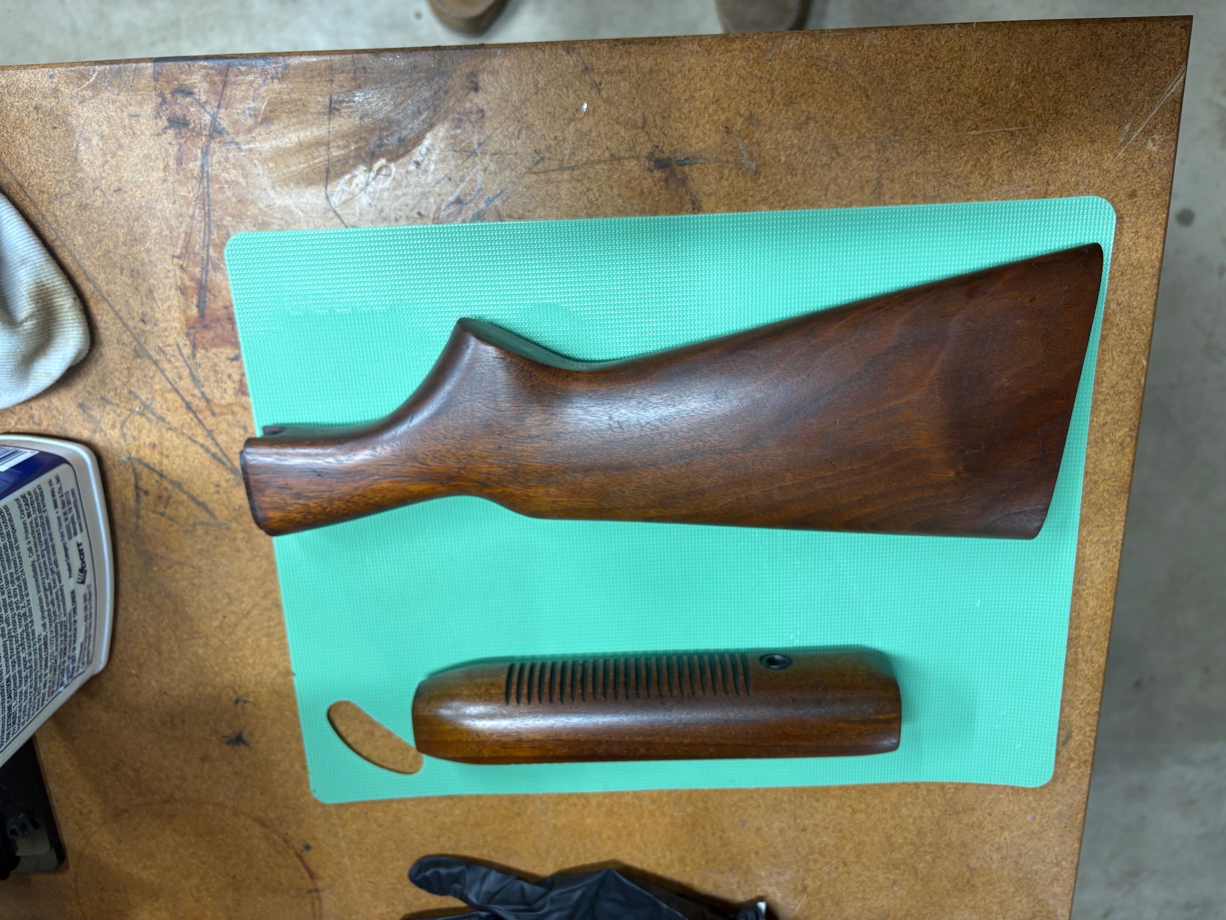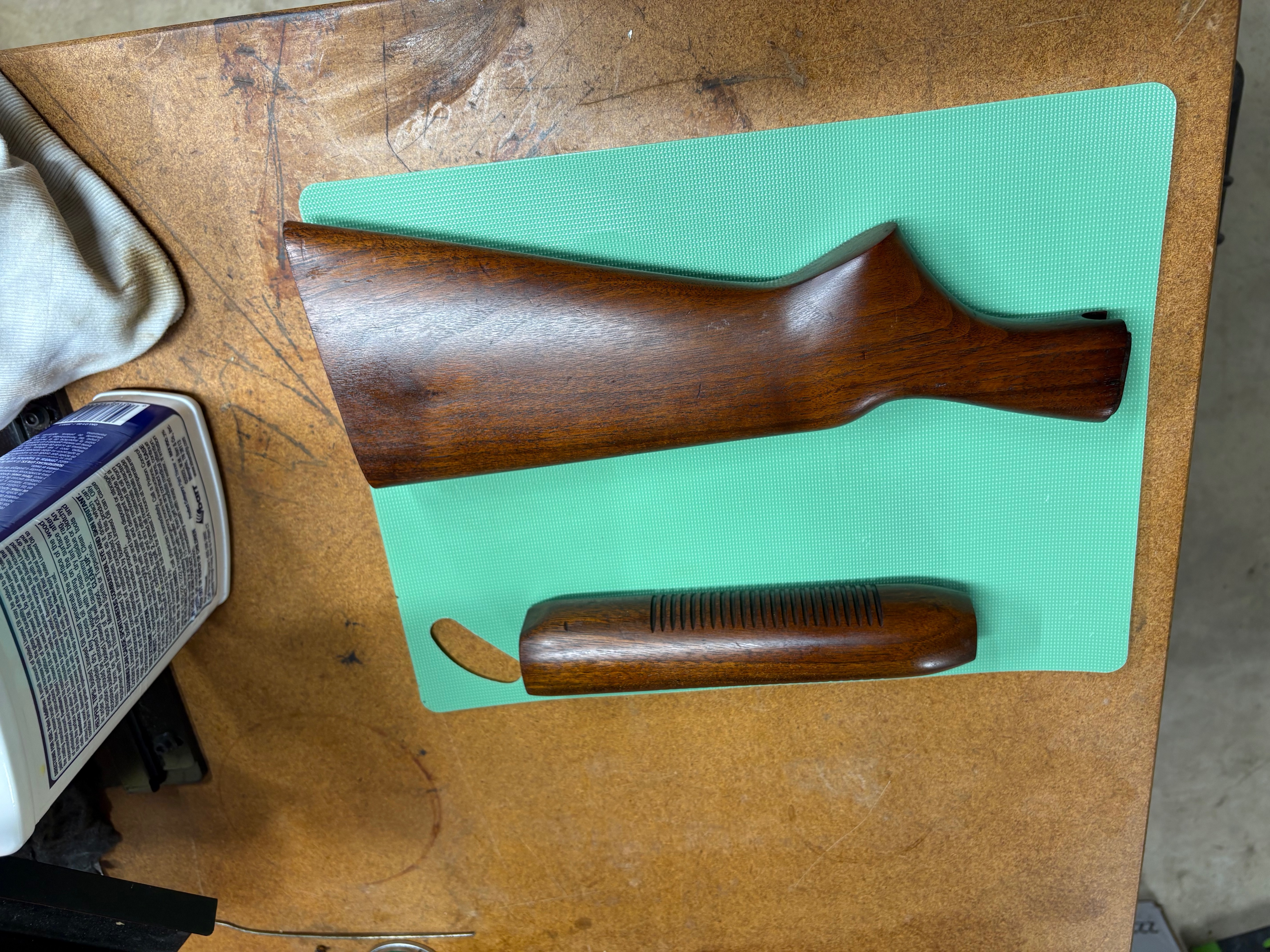 OfflineAfter reading all the things that have been replied when someone new or a guest asks about cleaning up an old rifle, I decided I had the perfect candidate to experiment with. While cleaning up an inherited 22 I accidentally got some carb cleaner on the butt stock and found out pretty quick why you don’t use carb cleaner around guns. This is a 60s vintage R word 22 that had a lot of surface rust. Something that lived in the barn for taking care of whatever a 22 was needed for. I cleaned up the metal with pb blaster and brass wool. The rear stock i used carb cleaner on the entire thing to remove the rest of whatever the original accident turned the finish into. Then I wiped both stocks with acetone, 2 applications of danish oil, and finished with 2 applications of boiled linseed oil. They aren’t perfect but I wasn’t looking for perfect. I am going to try this on an 1892 I just purchased that had been sanded and varnished. I plan to use denatured alcohol to remove the varnish and the carb cleaner will never come back to the gun room. Please let me know what you think, and offer any advice.
