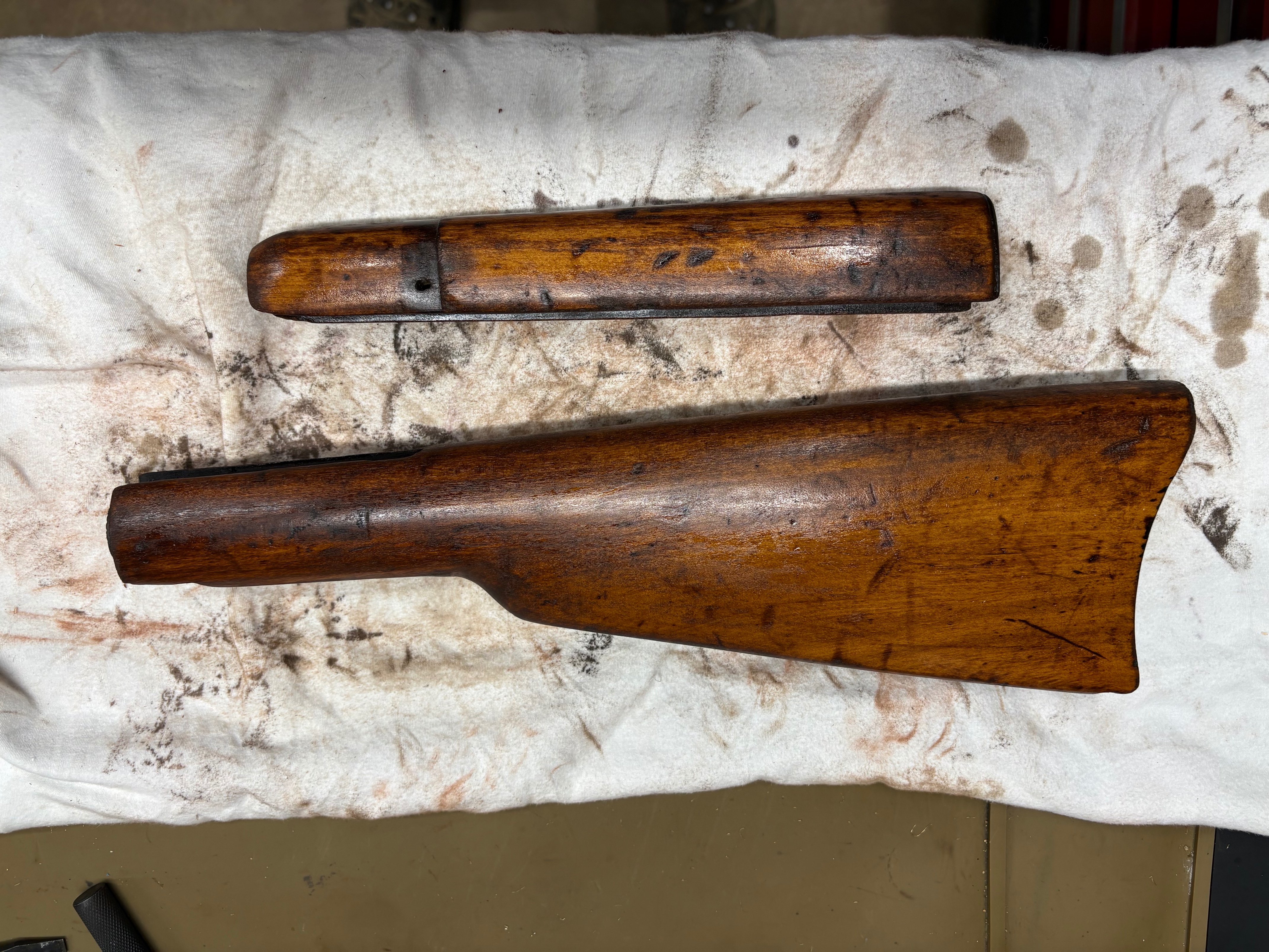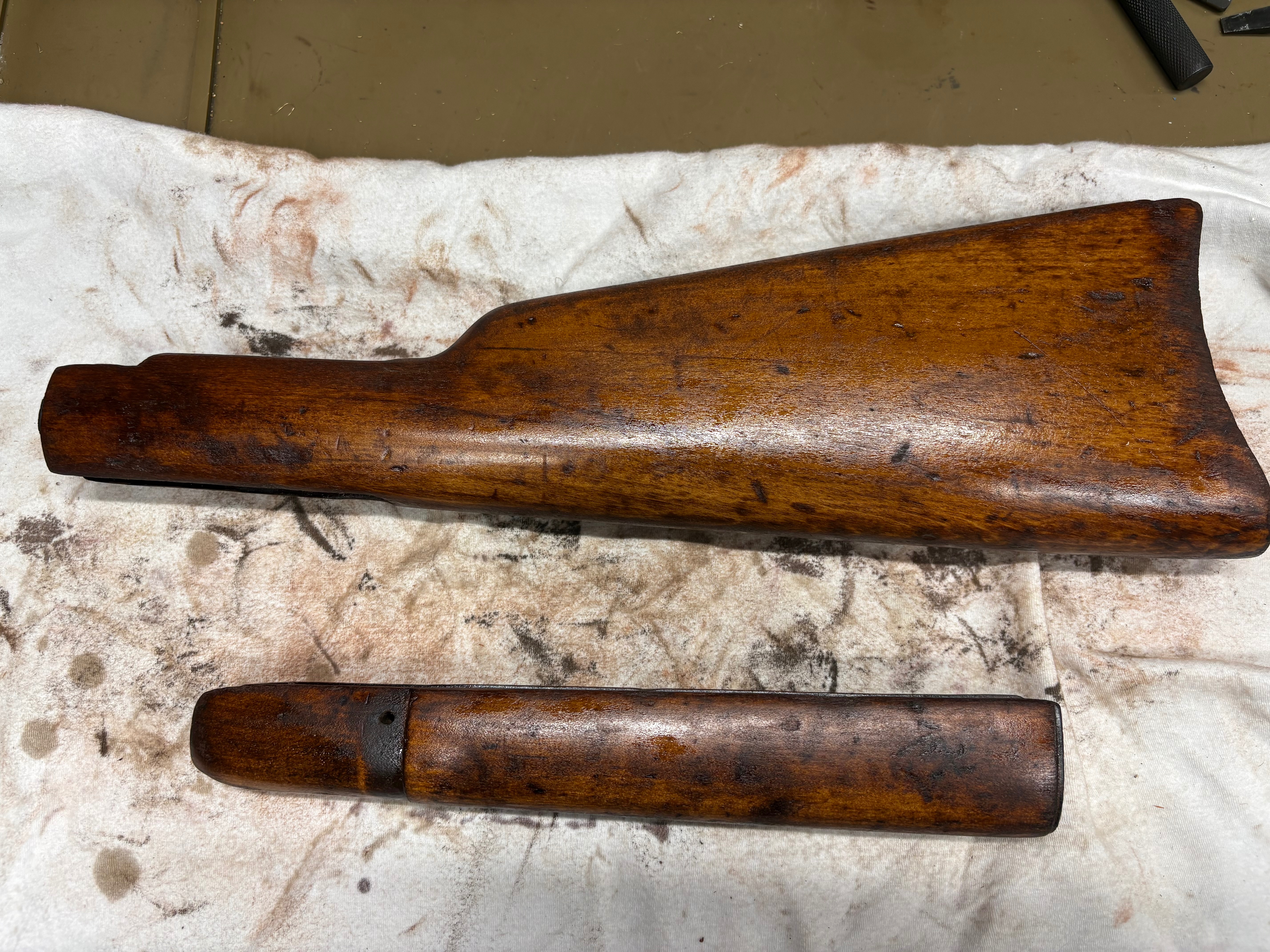 OfflineSo I had already put a coat of stain on before Chuck said give it a day and we had the dent steaming conversation. In short, the stain didn’t take well, as the latter comments said it wouldn’t. It at least has an oil finish now instead of whatever varnish it was. I’d like this thread to serve as guide to people like me that watch the Marks on YouTube, that half hour video takes several full days of work. You can do it yourself, in “free time” but patience is key and the videos do not contain all the details. However Mark Douglas and Mark Novak are the best videos to watch IMHO. This place is the best place for information, my lack of patience was my issue. Not to be forlorn. I can always do it again with these stocks as they had been abused by a previous custodian. Never give up.
