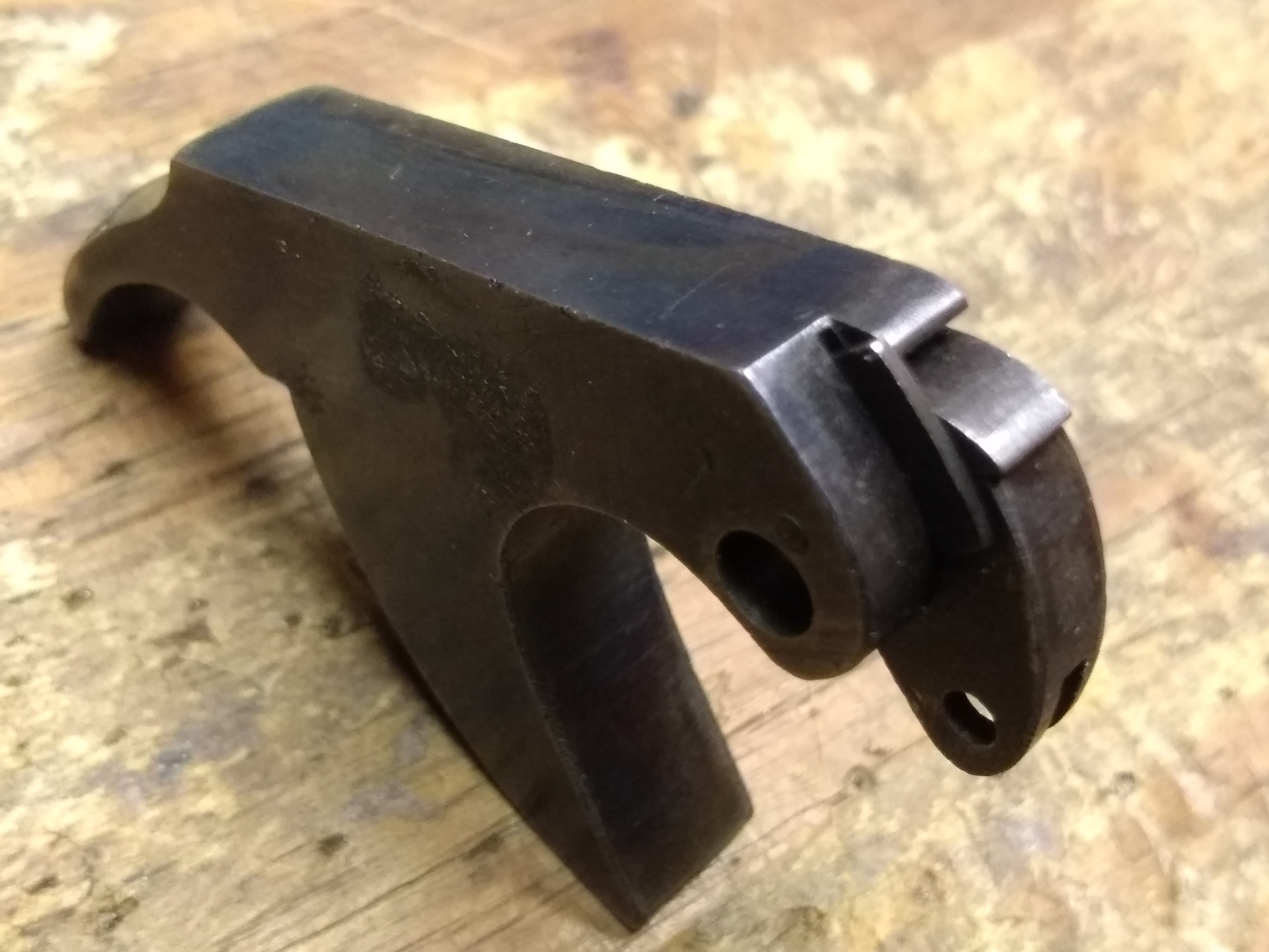 OfflineThe correct term for the fly is “sear over-ride” center type. Is the pin in the hammer or is it missing? Are the hammer notches original and the sear original? If not you are going to need help! The set trigger has no wiggle room, every part has to be to original spec or nothing works. You have to compare your part to a new part and make it match by welding and machining, then assemble properly and tweak. You have to have original parts to use as a pattern! T/R
