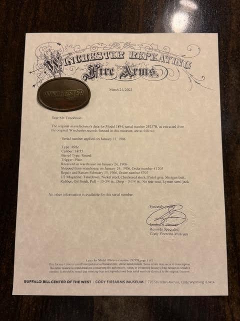 I did a little digging trying to find information to value the gun, and I stumbled on an old thread of a similar semi deluxe rifle that letters within a month of mine, also showing a repair and return. Not sure what to make of that. Could just be a real specific coincidence I guess- or, something to do with how Winchester was handling these special order guns?