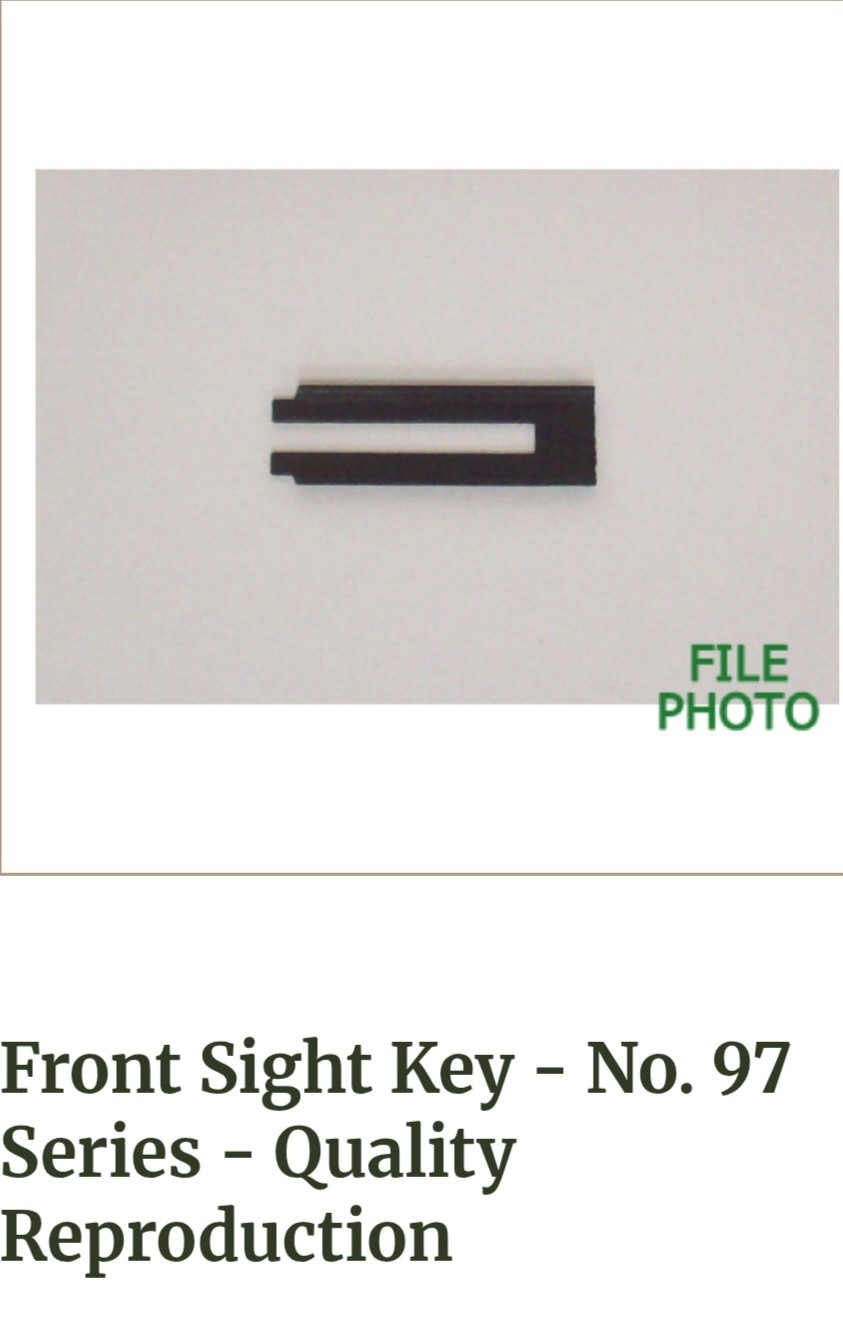 As an aside, in removing the sight hood to clean out the “fuzzies” I discovered the front sight key was broken. It wedges between the front sight hood and the removable sight ramp to hold all the parts firmly in place. I was able to get it re-installed albeit in 2 pieces however I did find a replacement from Classic Firearms & Parts.