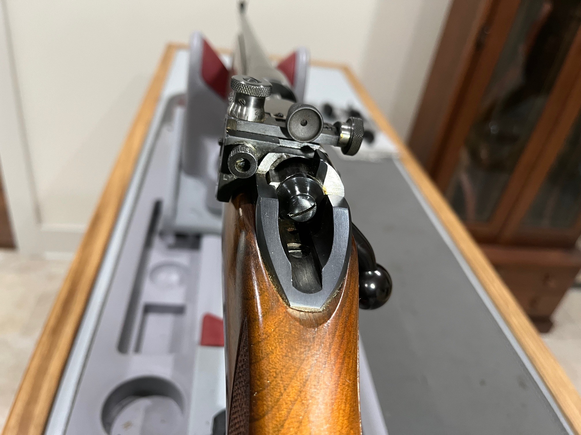 Lou, you are right neither the Lyman 48F nor the Redfield #255 are original to the gun, S/N 99076C being an end-of-the-bolt Sporting Rifle. I only recently obtained both sights from BRP, who, in a moment of Christian charity, sold them to his fellow Anglican at (slightly) less than their current eye-watering market price. He furnished me two lengths of elevation screw, the shorter one presently installed but very likely still bearing on the stock.