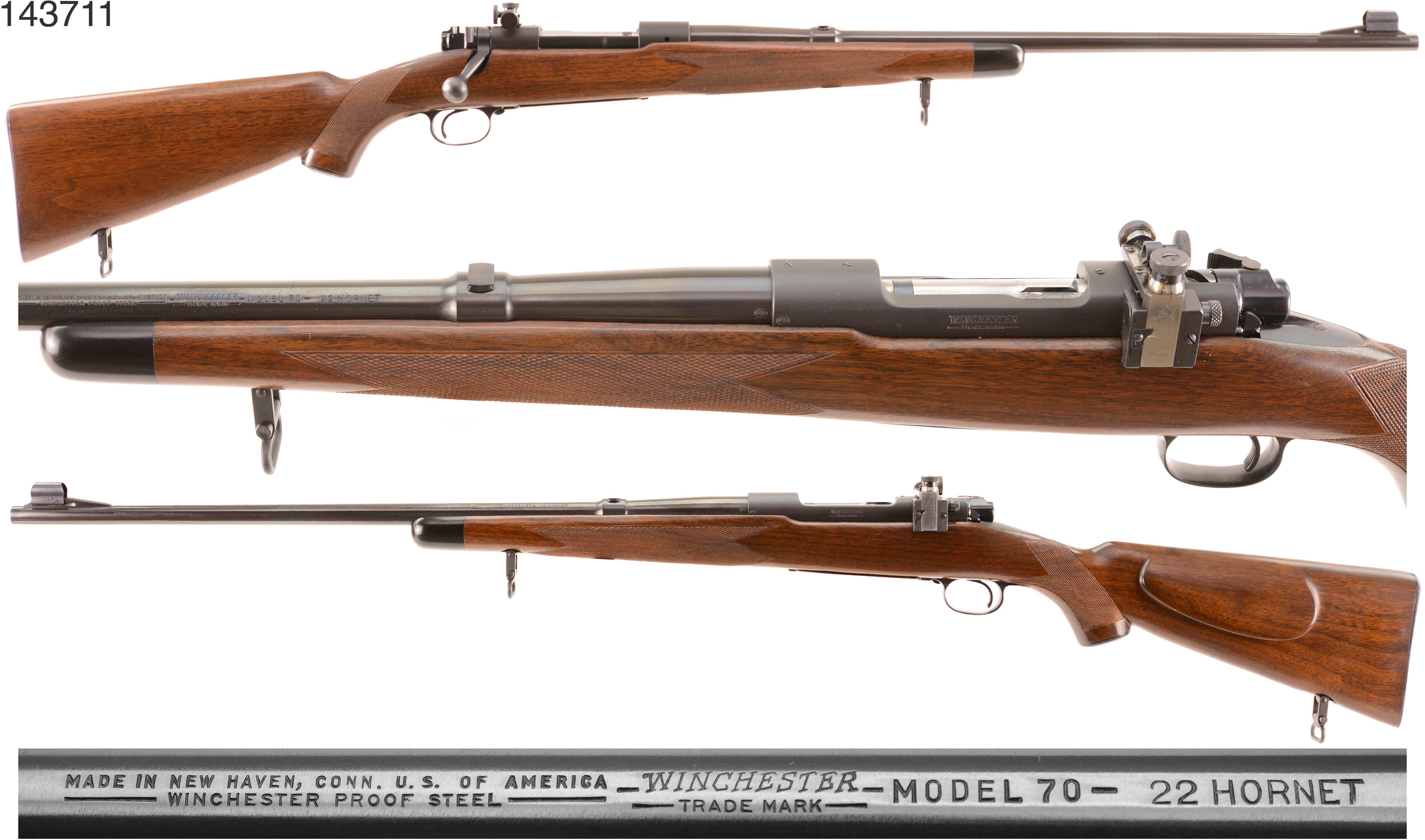 Although the Hornet cartridge requires a scope for all but the most highly skilled to utilize its maximum humane range on small varmints, a Model 70 in that caliber and equipped with a good receiver sight has a couple of advantages.