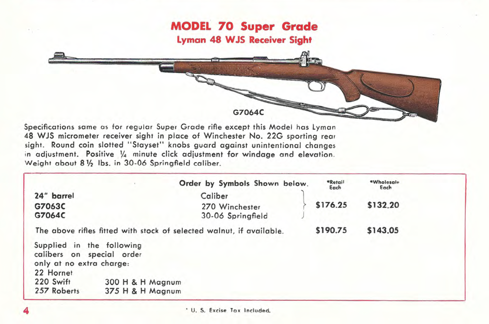 The last Winchester catalog that listed the Lyman 48WJS option (and only for 270 WIN and 30-06 SPRG) was January 1950. They were all gone by the December 1950 (1951) catalog.