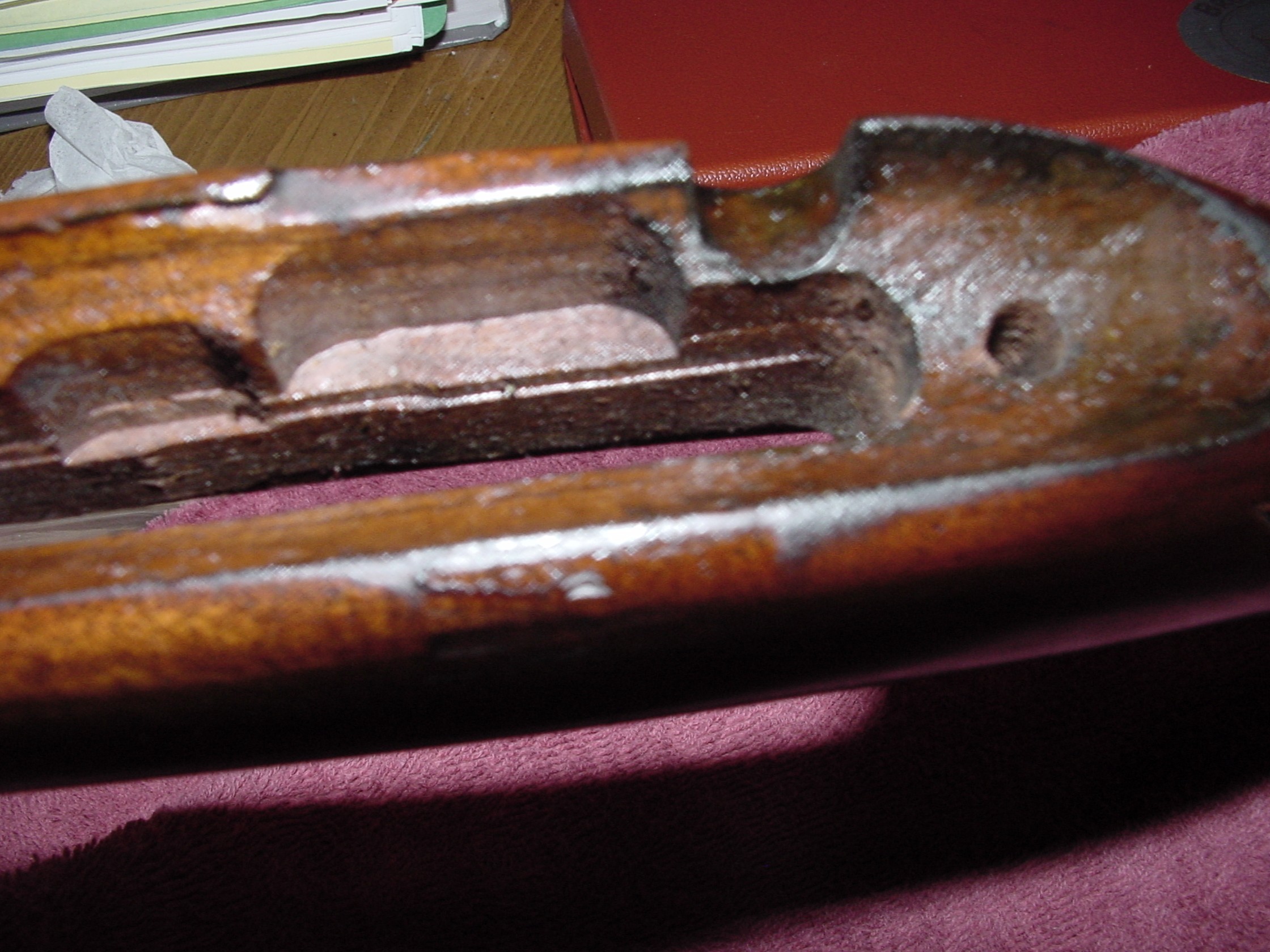 You don’t need a longer elevation screw; you probably need to shorten the one you have. A longer screw would be indicated if you could not get the sight bridge high enough. Since it will not go low enough, and since it is almost certainly the elevation screw contacting the stock that is the problem, you have two courses of action open to you. You can shorten that screw with a file or bench grinder, OR you can make a relief cut in the stock which allows the sight to come to its lowest setting. Here is a pic showing what was commonly done to accomplish this: