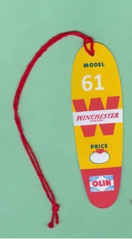 Bill it would be nice to find an original tag. I often see commemorative model 94 tags and papers for sale so maybe an early 60’s tag for the model 61 can be found.