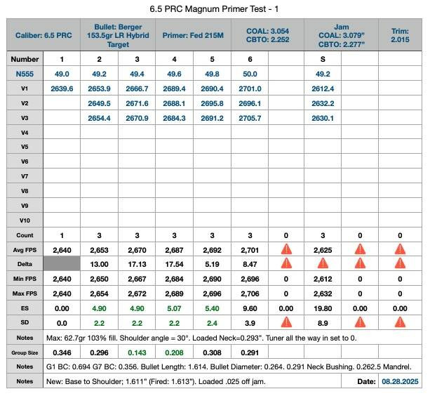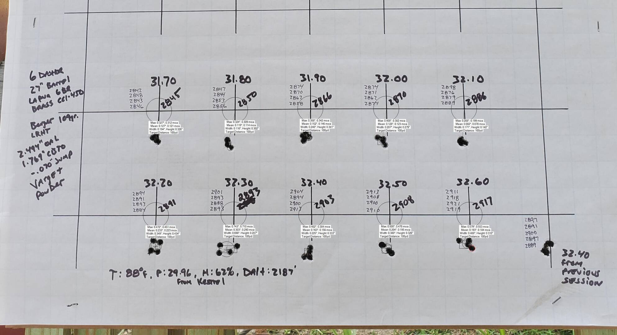 31.7 ave is 2844 and 32.1 is 2885 a difference of 41 fps. This is too much and won’t produce good groups over time.