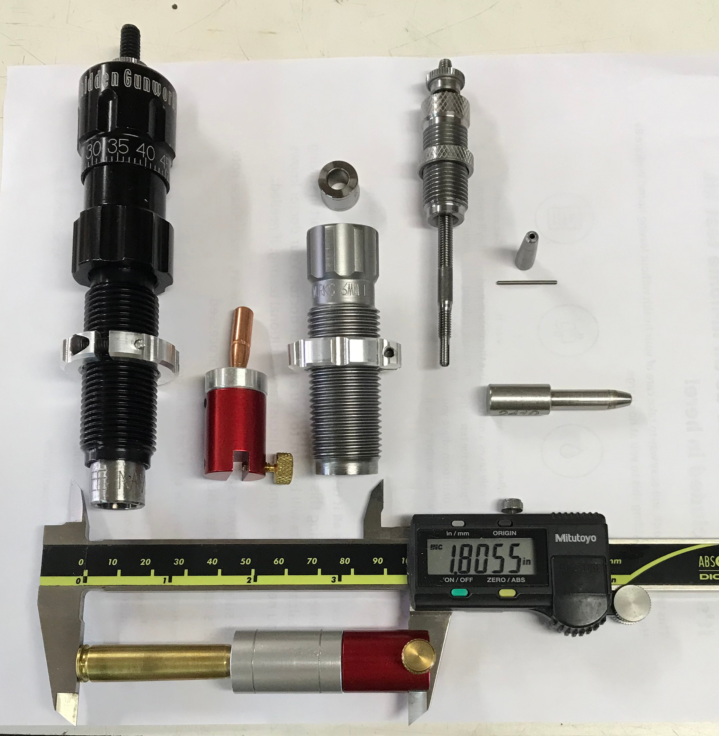 OfflineJust opened the box from Whidden with the new full length sizing die and the micrometer adjustable bullet seating die. Here is a picture of the die and the equipment I use to size the brass and set the headspace then seat the bullet. The seating die is on the left. Then a bullet comparator to measure and seat the bullets where you want them. Next is the full length sizing die taken apart. Above the die is a bushing that goes into the top of the die to squeeze the case neck to the size you want. Right of that is the assembly that goes into the die. Depending on how far you install this part sets how much of the neck gets sized. Note that the decapping pin and expander have been removed and won’t be used. Below the decapping pin is the expander mandrel that will expand the neck to the exact size I wish. Along the bottom is a caliper with the case tool attached so you can measure the headspace of the case.