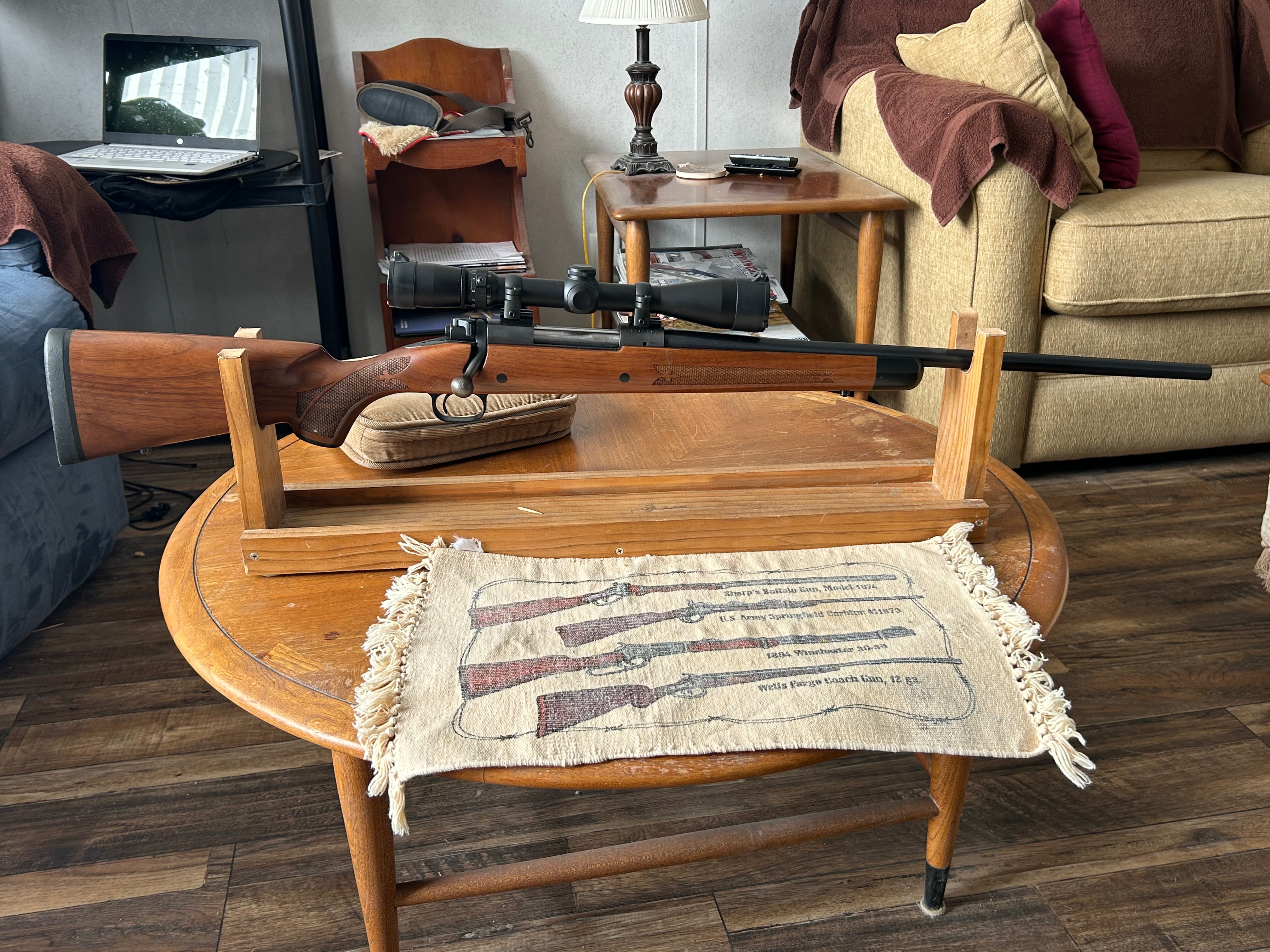 Dang! Where’d you get the fleur d’lis stock? That is a handsome Model 70.