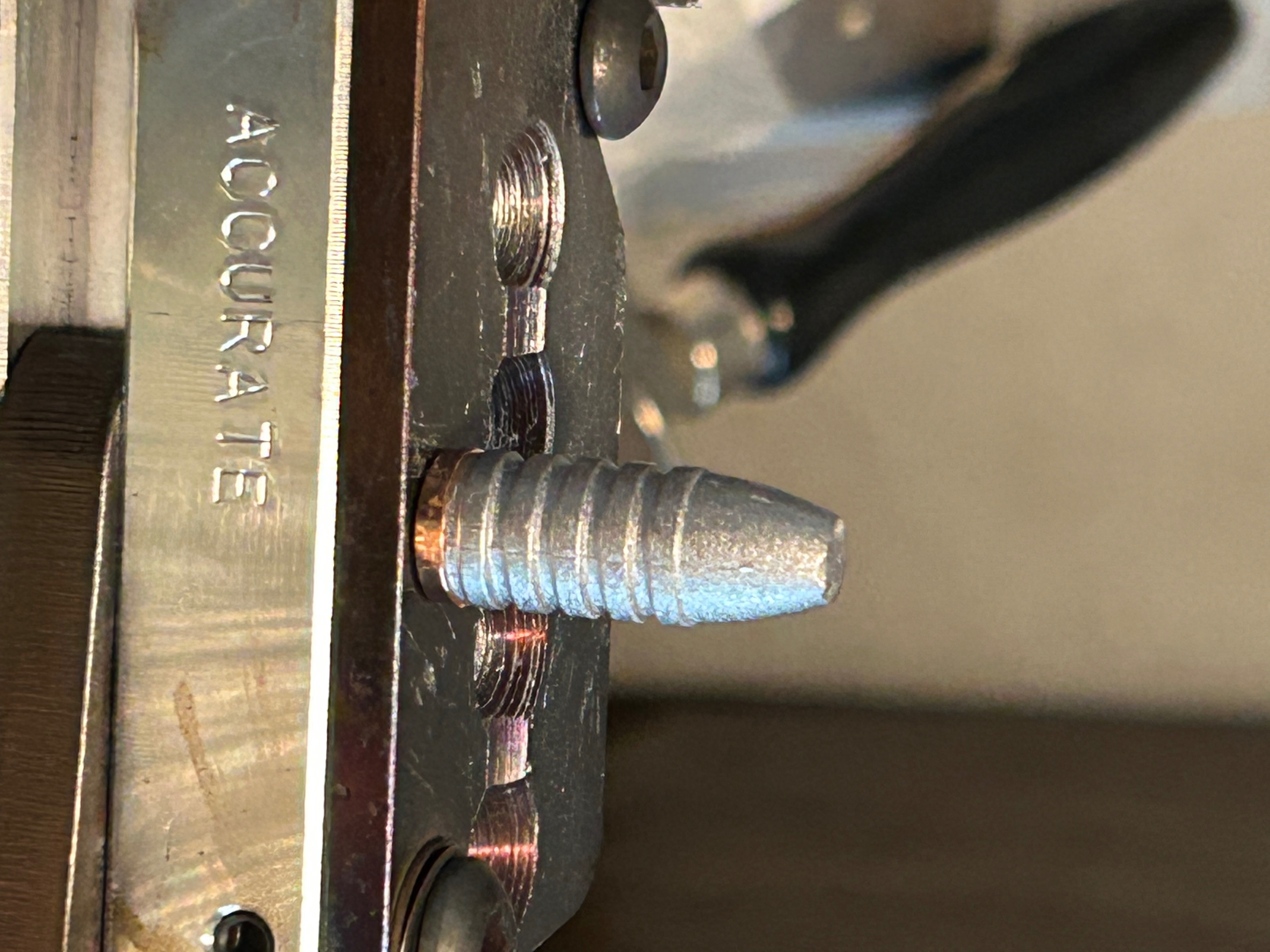 I see that Bear creek has a .380″ diameter bullet. It’s a bit heavy but I can cut off some of the bottom. I slugged the barrel and it is .380″ in the grooves and .374″ at the lands.
