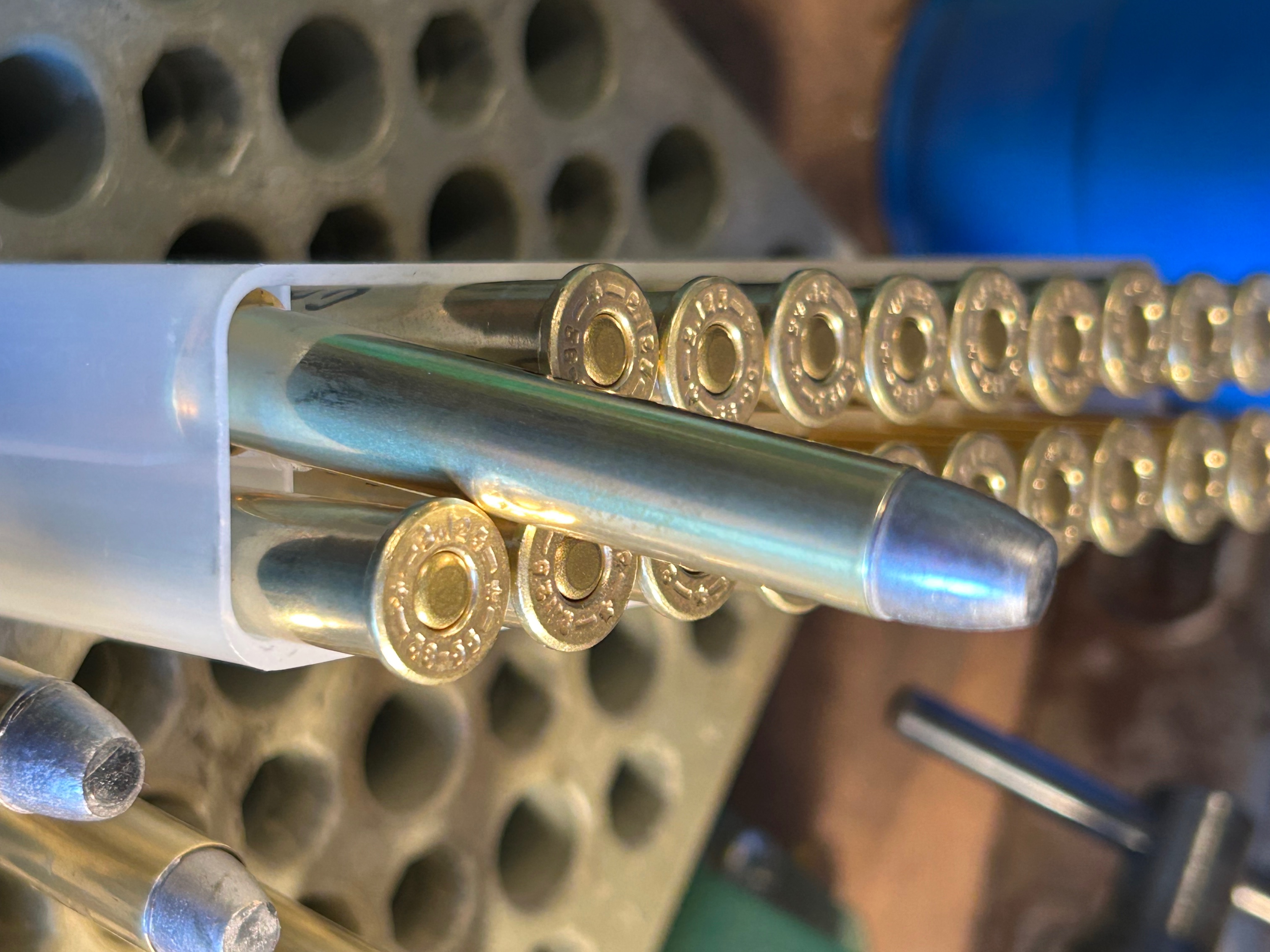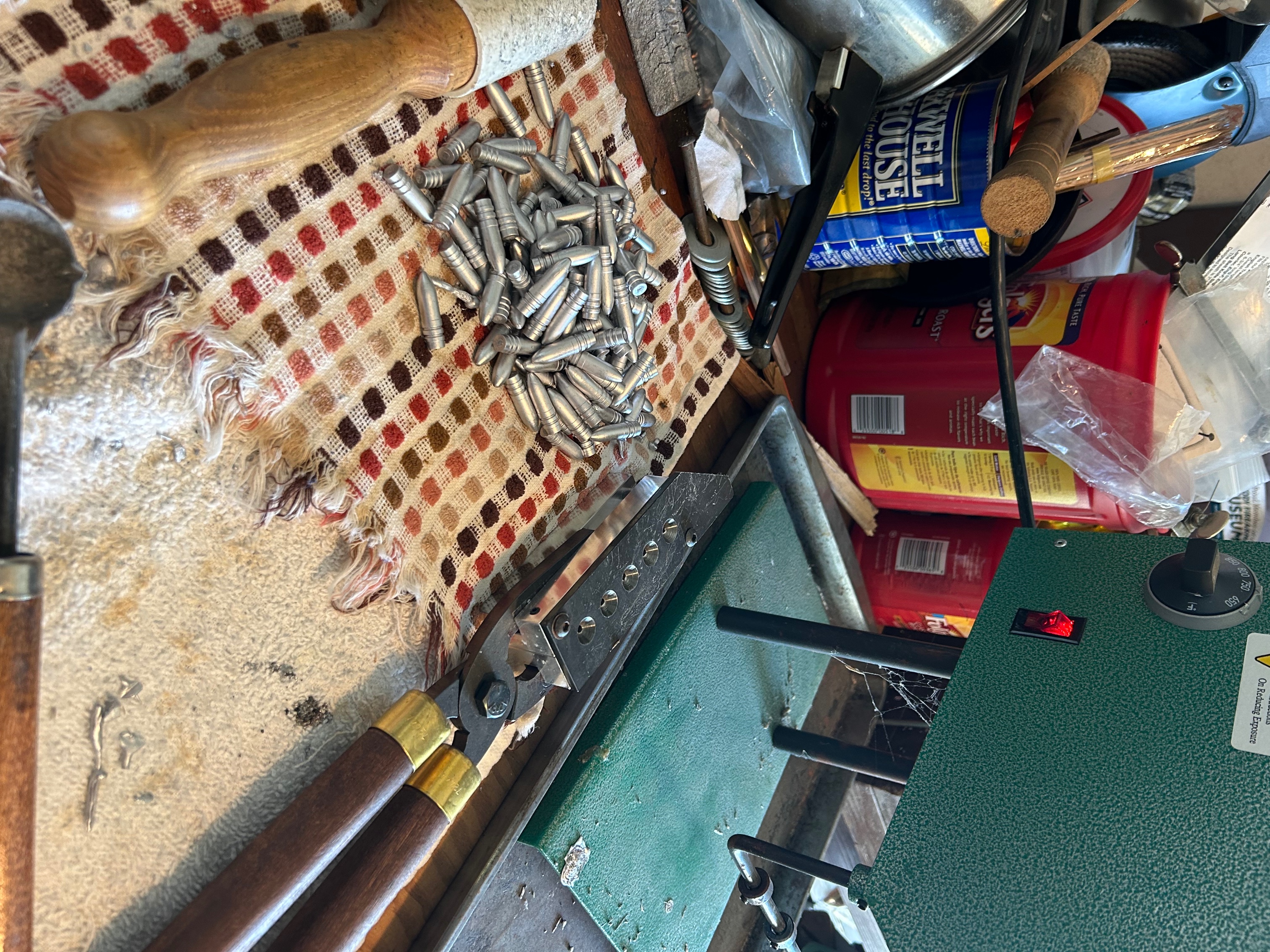 Actually they shoot very well, especially when I set my QC standards pretty tight. This week I’m wondering if I need to have an eye exam. Only a couple culls with over 200 38-55 bullets and 5 out of 125 30US bullets…and the lubrisizer found all the 30US culls. I had no trouble recalling the cadence for these moulds and they dropped some great bullets! For 50 yard shooting with peep sights these will shoot better than I can and they kept me from crawling the walls this week. Hardest part today was swapping out the die in the lubrisizer. I’m trying to get Zebulon up here to pour a few hot ones. I found over 600 loaded 45ACP rounds today so my plans for pouring a big pile of H&G 68 wadcutters got pushed back aways. Let me know when you’re coming, Tom. I’ll freshen up the sheets in the guest bedroom. For me casting and loading is vital for being able to shoot these old Winchesters we love. Good therapy, too. You can’t let your mind wander when you’re working with molten lead or gunpowder.