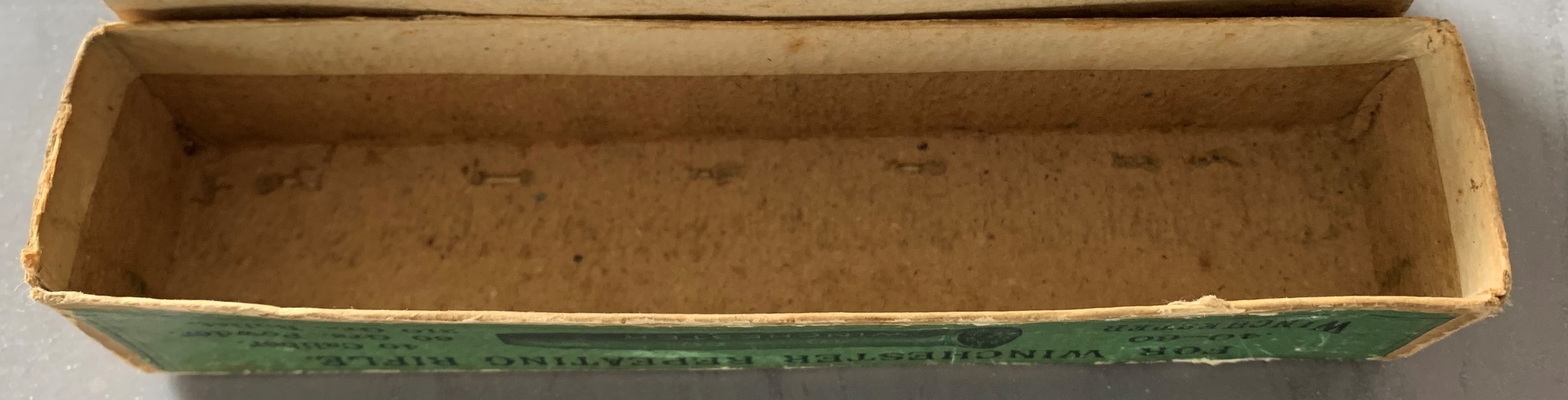 OfflineI recently bought this open (not shrink-wrapped) mid-1880’s .40-60 WCF box. Since it was not shrink-wrapped I opened it to look inside. There are two rows of cartridges with a step for the back row which raises them up. I presume this is to make it easier to get them out.