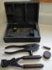 That’s a very nice set. My box measures 8 7/8″ long, 4 1/8″ wide and 2 7/8″ tall. Interesting that you have the wad cutter. I too have a near new 1880 spoon handle set with a wad cutter marked 45W. Caliber is .45-75. Your cutter is only the second one I’ve ever seem with a Winchester caliber making. Also wanted to mention that my box has never had provisions for closing and latching the lid. I think these are very interesting.