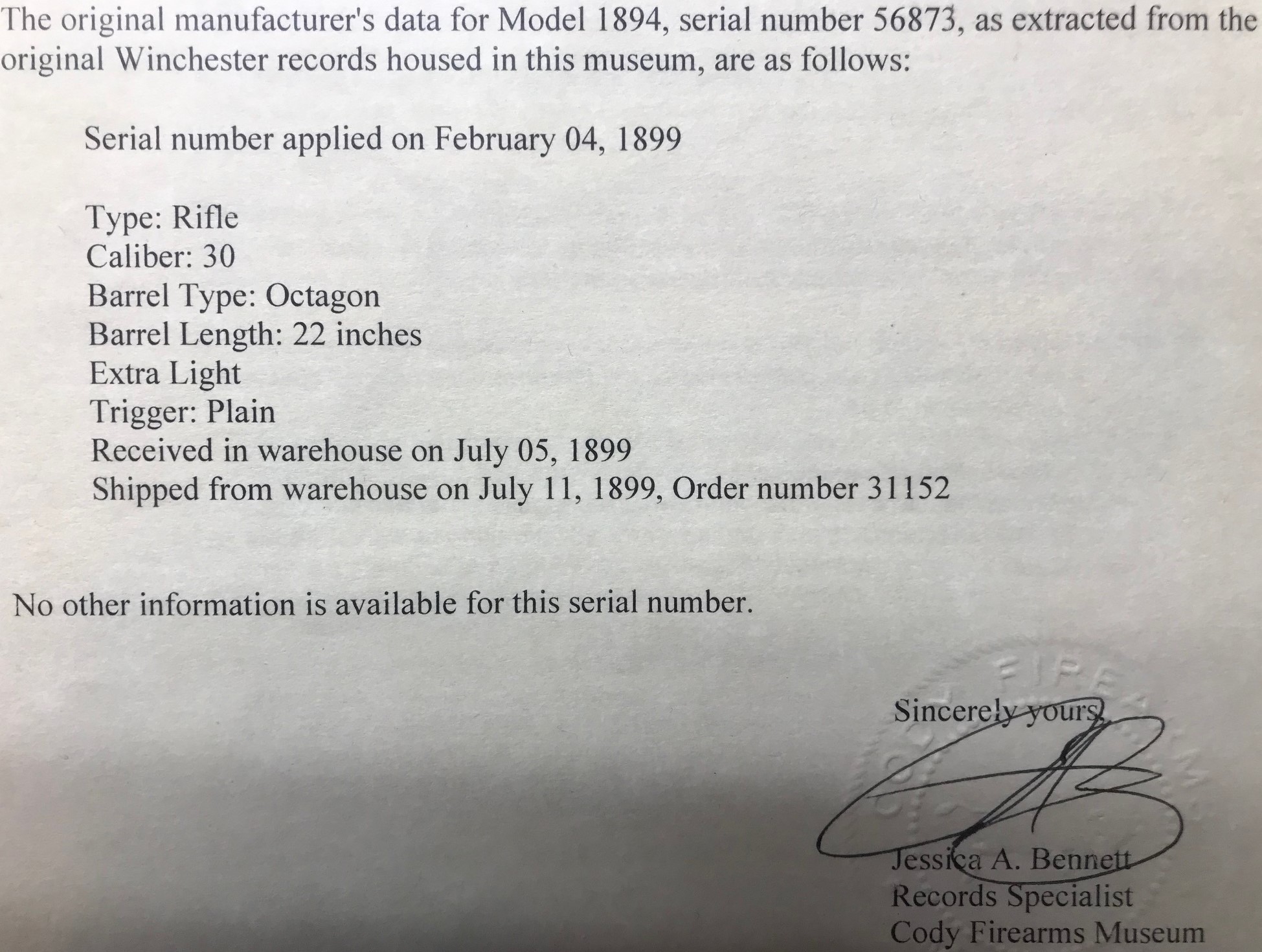 Thanks again Gary. Look forward to seeing a photo. Reading your article again in the Winter 2018 Collector magazine and you mentioned possibly doing an article breaking down the stats of the 1894 extra lightweight shorties. I’m looking forward to that one…hint, hint…