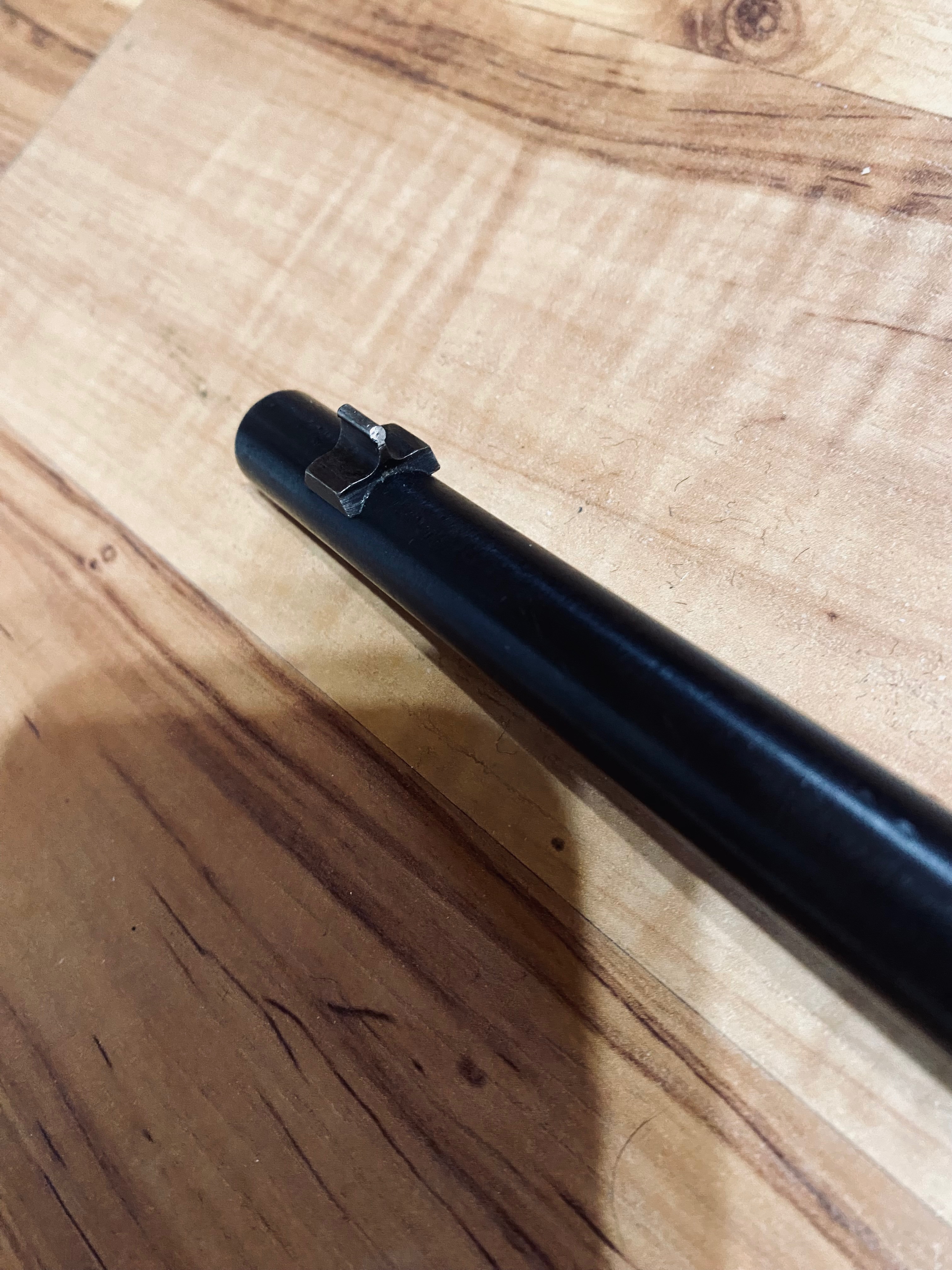 Sold recently at RIA:SN 853399 (no additional letter), SN marked on bottom tang; no markings on top tang.Barrel is 23″, ROUND, marked “Model 90” & “22 L. Rifle” with crowned (not flat) muzzle. No markings on underside of barrel other than an indexing mark. Barrel proof is poorly struck, not clear. Bore is excellent.Standard 12-groove slide handle, checkered hammer.There is a small “W” on the bottom metal, about 1.5″ in front of the trigger guard.Outer mag tube appears originally intended for a Model 06, as the retaining pin groove is in the white where used for the Model 90, but there is another (unused) groove which is blued at the normal Model 06 position.Appears to be a pretty late parts cleanup model, WACA lookup gives 1940 SN application date.Hope this helps, happy to answer any further questions.