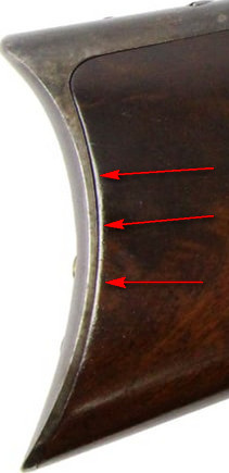 What caught my eye was the round corners of the wood. The forearm was real obvious. The stock was better but when you see a change in light reflection a long the edge (shinny strip ) means the surface is not flat. The same is true with the metal corners. If the edge of the wood along the buttplate came to perfect square edge there would not be shinny like that. Now if I saw this along the buttplate and the rest looked good I would think the wood was overhanging the buttplate and wore rounded but when I see the rest of the wood fit I know its been sanded by someone that didn’t know what they were doing.