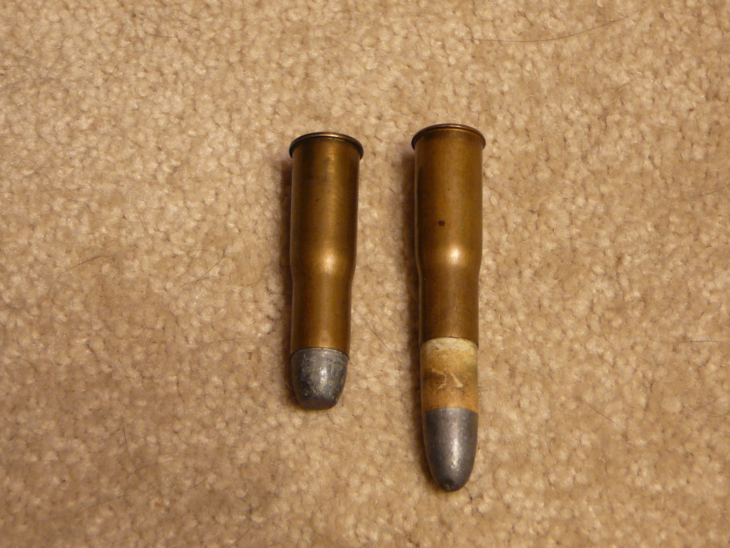 OfflineGilles, That is a new one on me. I DO know of the .45-90 version, and if I was to guess, the .45-100 is an experimental version or else the catalog has a “typo”. The .45-90-500 and .45-90-450 were unheadstamped cartridges that were to be single loaded for long range target work. Supposedly one rifle made it out of the factory marked for this cartridge, but it has yet to be found. The cartridge in question uses the .45-75 case, with a longer bullet that is paper patched and seated well out to make room for the powder charge. The example I have weighs enough compared to a normal, WCF .45-75-350 cartridge, that it MAY (note heavy emphasis on “may”) contain a bit more powder than the 90 grains, but unlikely to be 100 grains. Even compressed, I doubt there is room for that much powder. Once loaded into the chamber singly, it would require teasing the loaded round out of the rifle if it was not fired as the length exceeds the length of the opening for the elevator, etc. Look in the book on the 1876 by Herb Houze and he has a drawing of the subject cartridge with a short discussion. The subject cartridge was not loaded very long. I suspect it was overly hard on the rifles. Tim