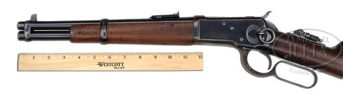 OnlineWith a bit of time to kill this evening I dug into my data derived from the first 288,000 (almost) Model 1892 ledger entries. With regard to 12 inch barreled configurations, they were all SRC’s. There were 56 total of which 1 was in 25-20 WCF caliber, 14 in 44 WCF caliber and 41 in 38 WCF caliber. Any way that you slice it they are a rare configuration for sure.