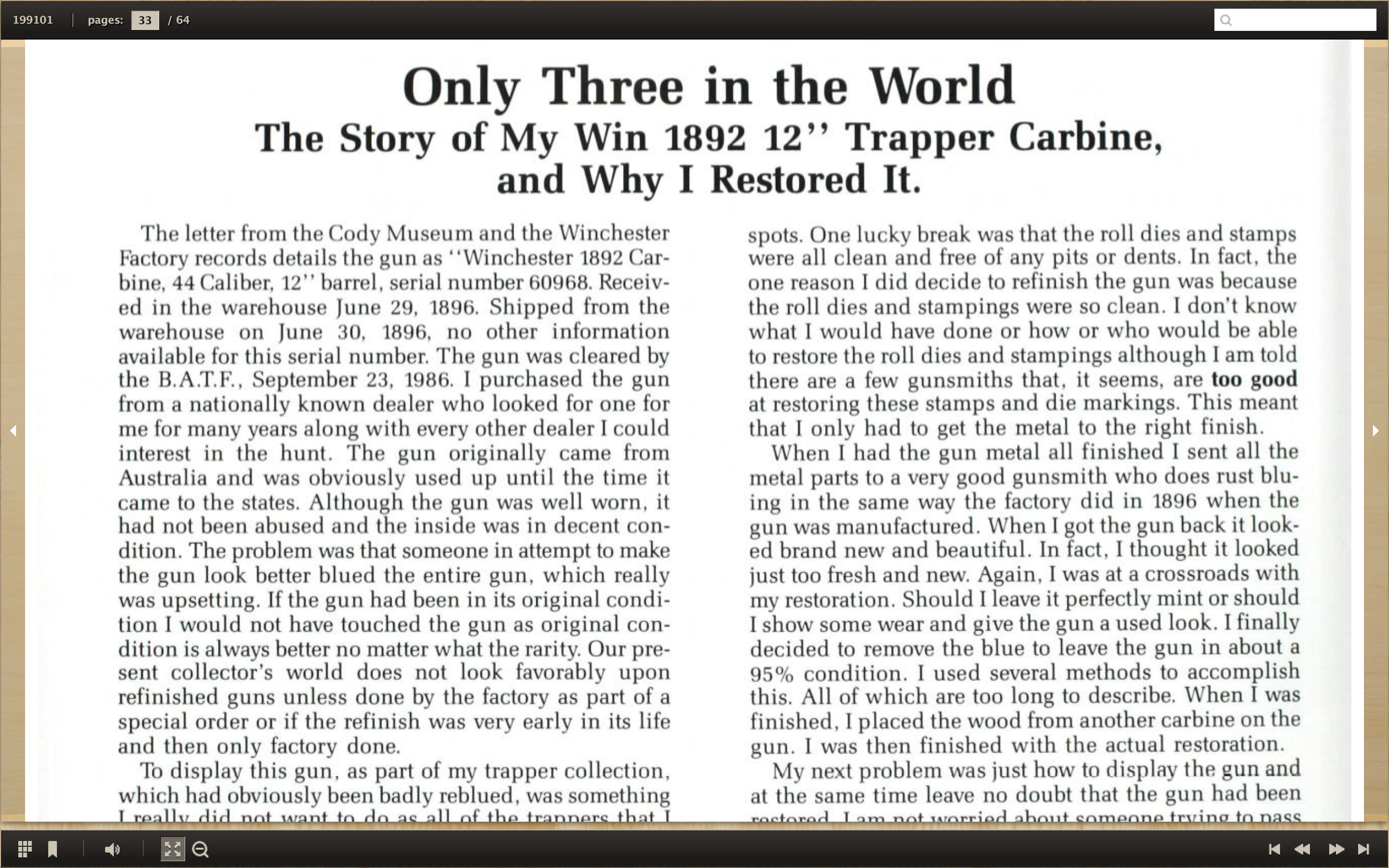 Do you own one? Does anyone here own one? Would you like to own one? Bragging rights among other collectors. At any show people would come around just to look at it. There are very wealthy people, including Winchester collectors, who are looking for items to spend their money on that gives them pride of ownership. They are at an age where they either spend their wealth, or die and give their wealth to someone else to enjoy.