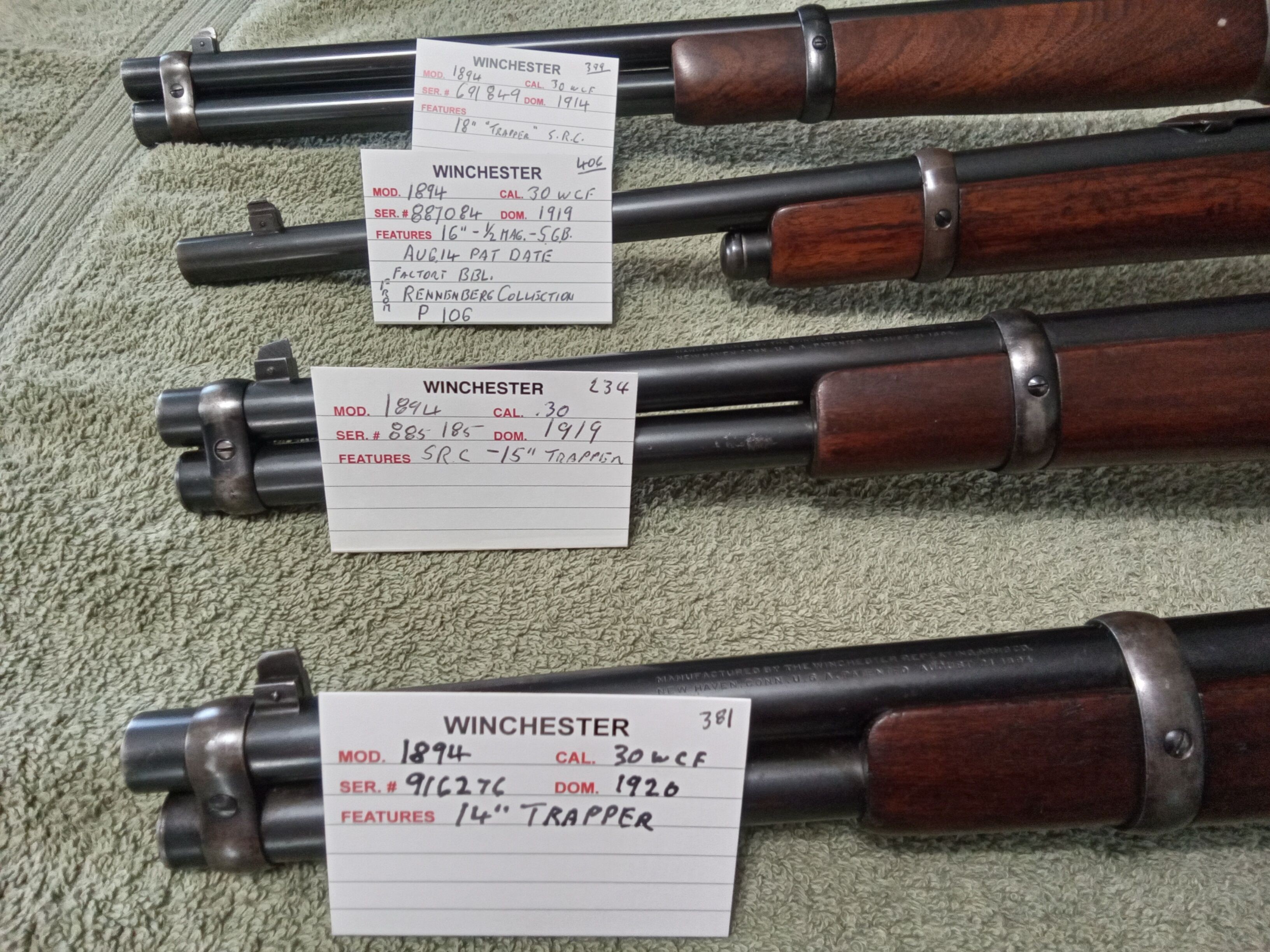If it is an authentic Trapper, it is a very uncommon gun. Thus far (in my research survey), I have documented just (6) Trapper Carbines in caliber 25-35 WCF with a 16-inch barrel. The earliest is serial number 439452 (date of manufacture 9/8/1909).