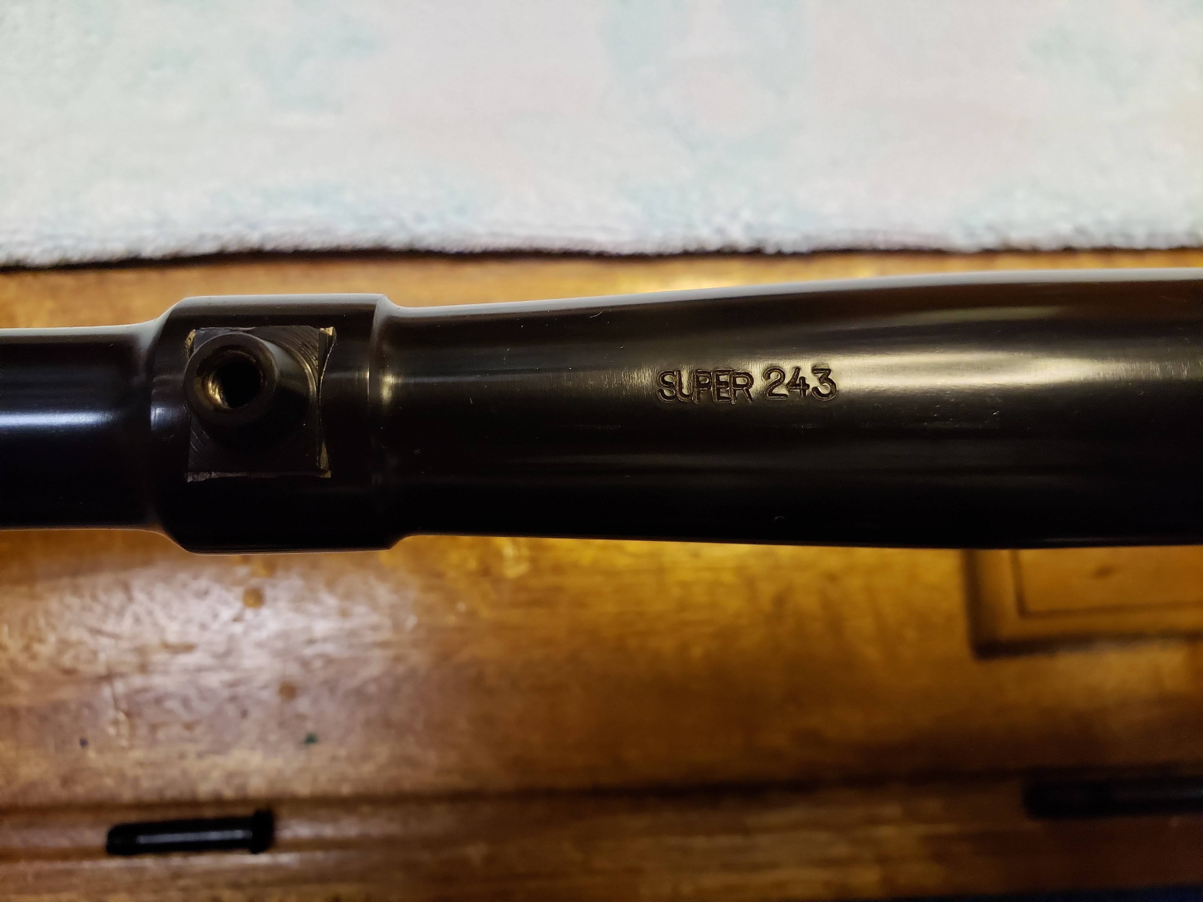 Don’t let all this talk on SG featherweights scare you from purchasing a nice SG featherweight if one should land in your lap. I have not seen a SG featherweight faked to the point that with Lou’s help and the two Model 70 books it could not be identified. Attached is the barrel of a faked SG featherweight that I purchased and returned. This faked barrel and receiver is quite obvious. Winchester would not let something like out the factory door