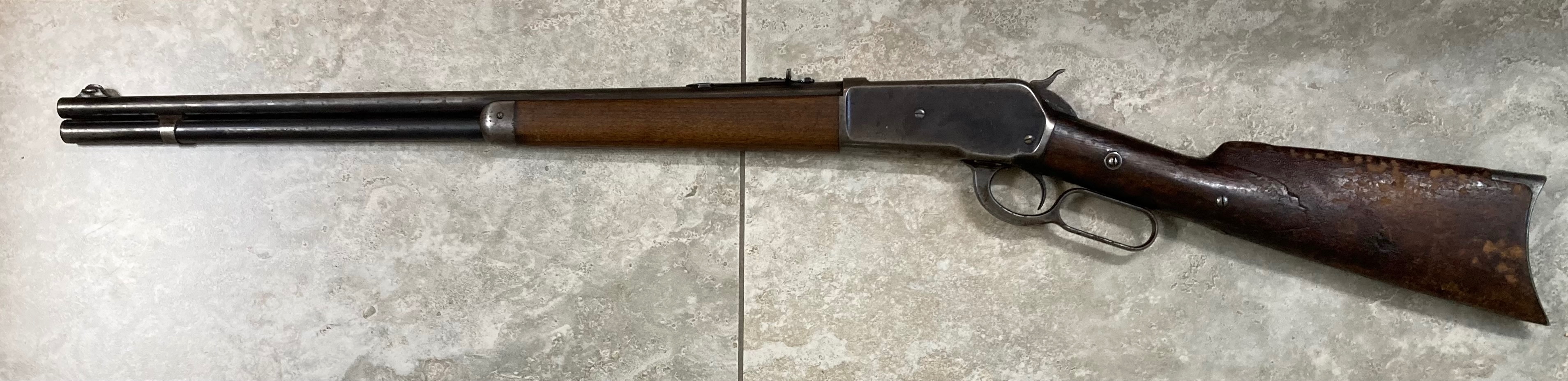 To.me, this is a very interesting Winchester on several.levels.First, it appears to be what I would call a short rifle, one with a shorter than 26″ barrel I have thought to be the standard. With its straight grip, it is almost a carbine and particularly suitable for carrying in a scabbard on a horse.