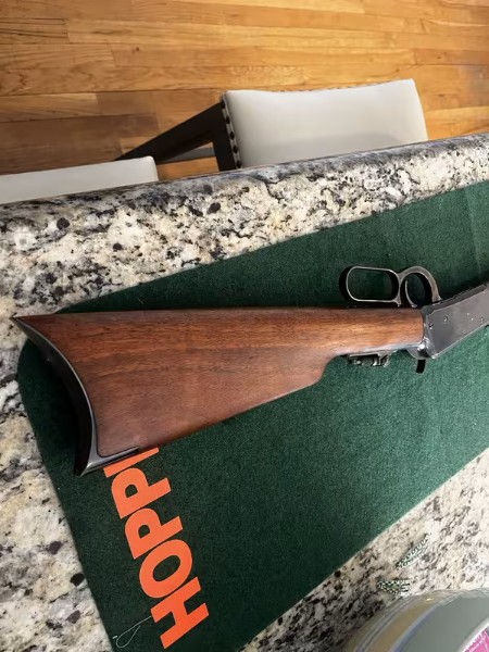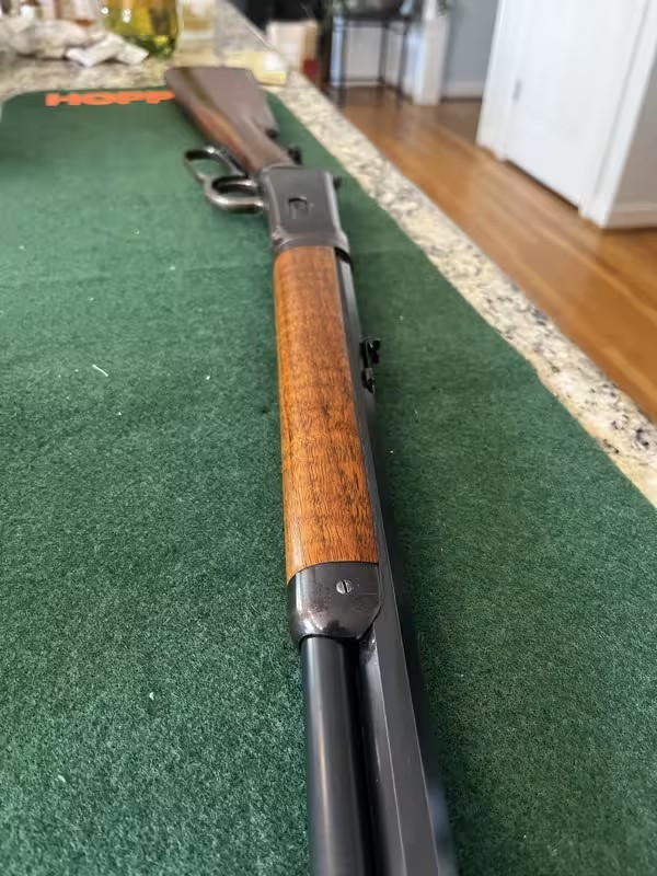 Unless the pictures are deceiving me, the rifle in question has been refinished. The color of the bluing on the barrel and magazine tube is not correct for rust bluing. Further, the butt plate should be case color finished versus blued.Bert