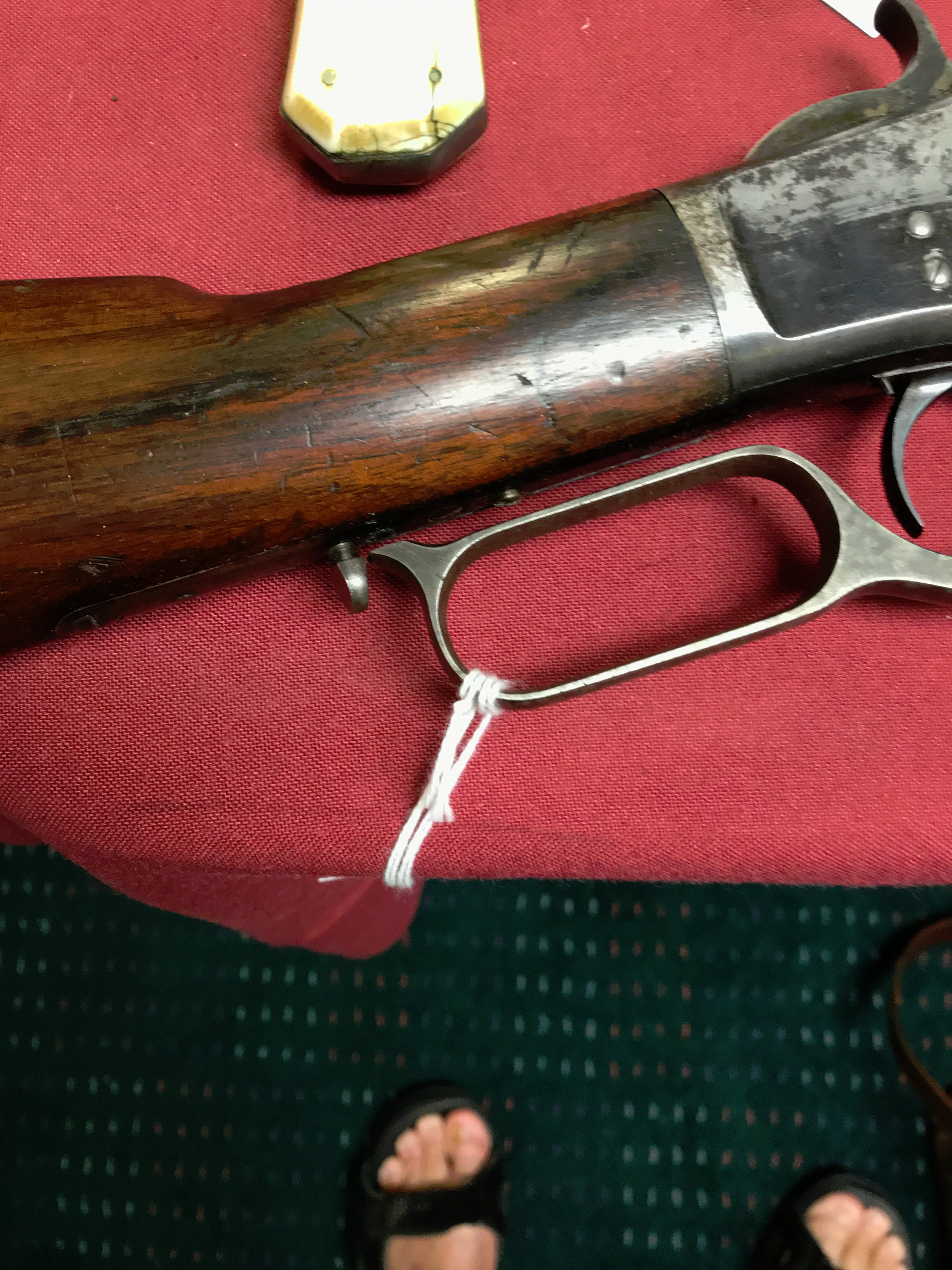 OfflineThe very first thing that jumped out to me was the serial number being “freshly cut” and also not being sure what the number is actually supposed to be. Then the next thing was the lever & latch. Somebody ground down a later lever and tried passing it as 1st model lever. Then they just made up a lever latch. Then looking at the finish on the lever, makes me jump to the finish on the receiver. Now I didn’t pay to much to the checkering itself, but agree with Bob. I noticed the fit looked off. Then everything else lined up. The gun has been reworked quite a bit. I wonder how “original” the cleaning rod is as well?