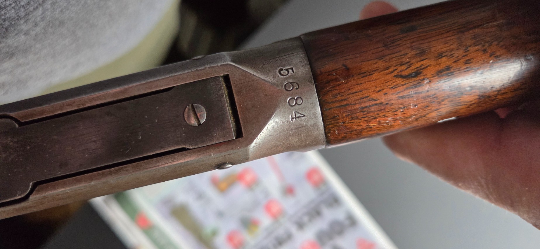 OfflineIt is a Second Model rifle, and it was manufactured in August of the year 1895. It is a standard Model 1894 Sporting Rifle, and it is original with the exception of the barrel mounted rear sight. I suspect that the original rear sight was removed (and subsequently lost) when the Lyman No. 1 tang sight was installed, and that somebody at a later time installed the No. 22 series Flat-top sight with a #1 series thumbprint elevator.