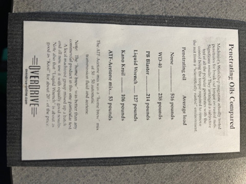 You’ve always brought a lot of experience to the forum, and so called Table. IMO! I’m not here to argue with you as I have also had a lot of experience with the penetrates, and rust dissolves, and such.