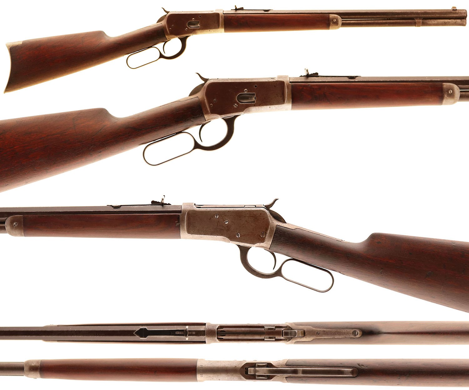 I was cataloging the current listings from Ward’s Auction and came across this Model 1892 with a 20 inch octagon barrel. It looks like a correct short fore end wood and the rear sight is located closer to the receiver face. The problem arrises from the fact that this rifle was listed on Gunbroker.com back in 2013 out of Houlton, ME as a 38 WCF round barrel sporting rifle with a Nickel Steel barrel. THAT is much more uncommon than a 20 inch gun by miles!!