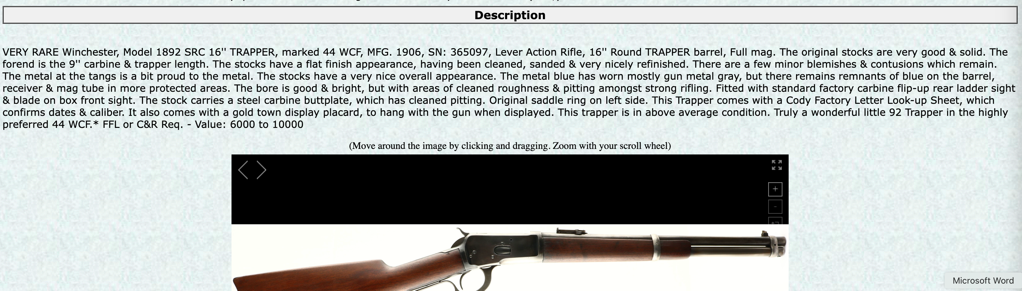 I was downloading the images of this rifle into my computer and found that I already had some from a previous auction listing back in June of 2025 but I had not entered the rifle into my spreadsheet. Does anyone recognize this description screenshot so that I can search the past auction and find out what it sold for?