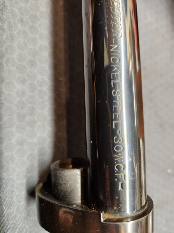 OfflineOK fellas what say thee? I picked up a Model 55 that is in about 95+%, one of those to good to be true guns. The wood only has a couple small nicks and wood to metal fit is perfect. The muzzle has some pitting and appears blued. Here are some pics. I realize the pics are pics but any thoughts on original or refinished?
