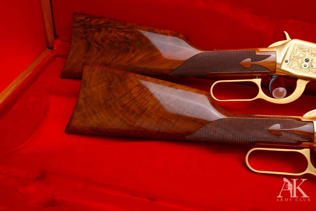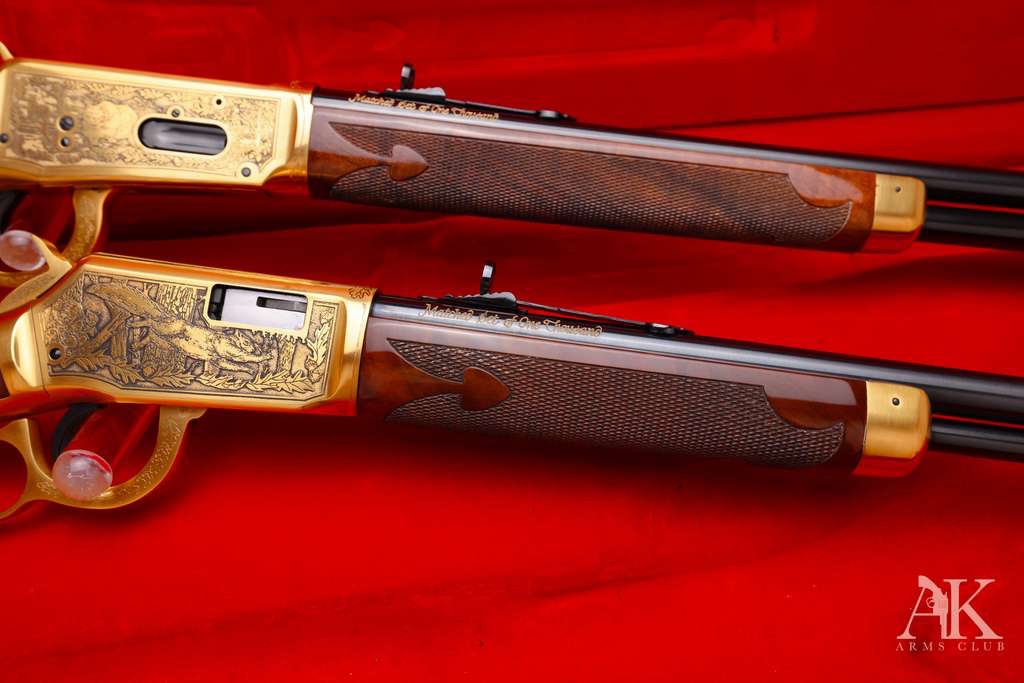 OfflineFellows: I just bought a Set of Winchester Factory engraved “One of One Thousands” Winchester 94 and Winchester 9422 Magnum. Made in New Haven in 1979. They are absolutely beautiful. Unfired, Complete with Wooden factory display case and all paperwork.. They were hand engraved in Italy for Winchester. 250 pairs were sold in Europe. I paid top dollar, but these are some of the finest I have ever seen. Golden Game scenes on both rifles. Unbelievable quality Burl Stocks. The barrels are marked in Gold “ One of one thousand “ Now 46 years old and beautiful. They don’t make them like this anymore. Most Winchesters are made in Japan by Miroku. They make fine guns. I am not knocking them. I have five of them, but they are not like these. These are special and I am so glad I got them. I have not received them yet, but will post photos when they arrive. I am going to put them in a glass case and hang them on the wall behind my bed, so I can look at them. I am sure you will like them. My safe is overflowing with lever guns. I am blessed. I have Colt Single Actions to go with most of my lever guns. I am sure that many of you know exactly what pair of guns I am talking about! Until I post these. Cheers!