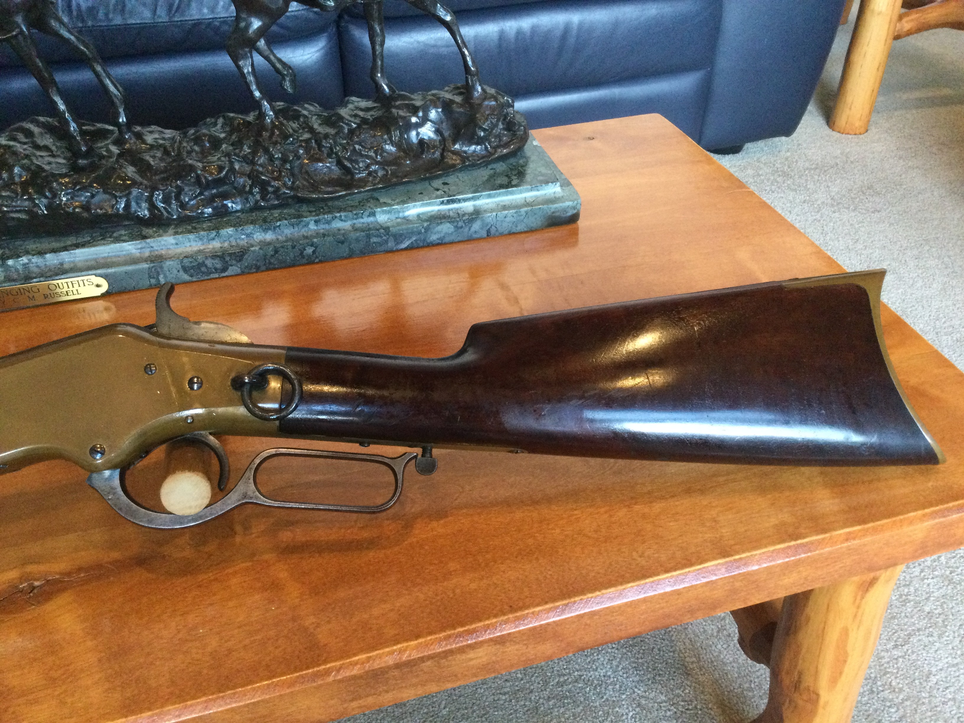 When I started collecting 1866s I asked senior collectors and large dealers that same question. To my surprise they all had the same answer, the brass first, wood second, and steel last. The brass (gun metal) has to have a natural aged darkening hopefully with the butterscotch look. Cleaned brass takes years to turn naturally. Artificially aged brass is a no go. The wood has to be numbered, original, and fit. The barrel and tube does not need to be nice blue like found on a newer gun. Turned blue, patina, or even a natural aged brown will do. Action has to function, bore is not that important. Being rim fire it’s probably a gun you will not shoot.