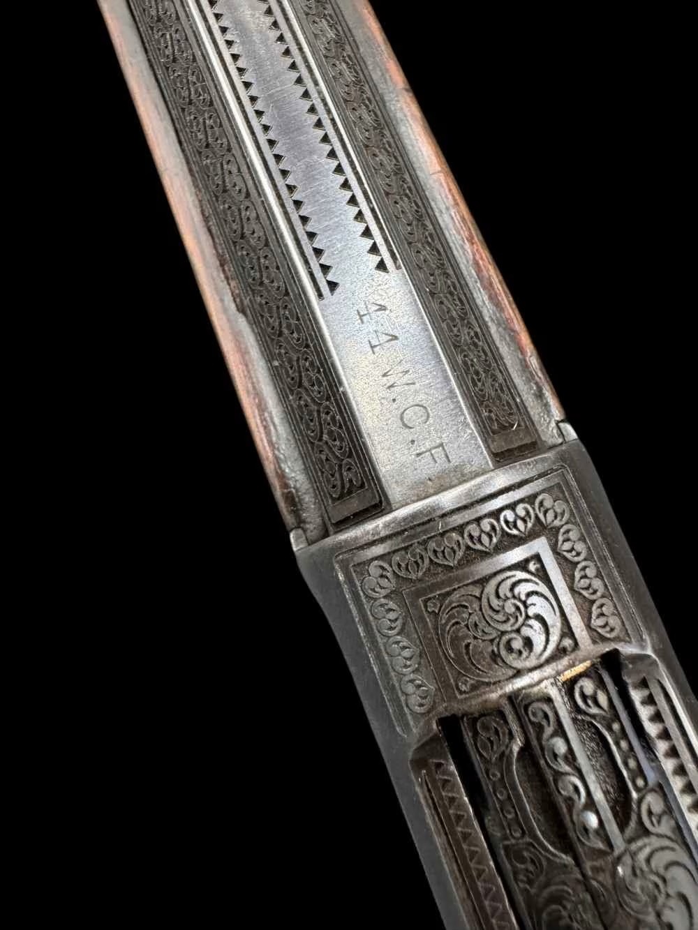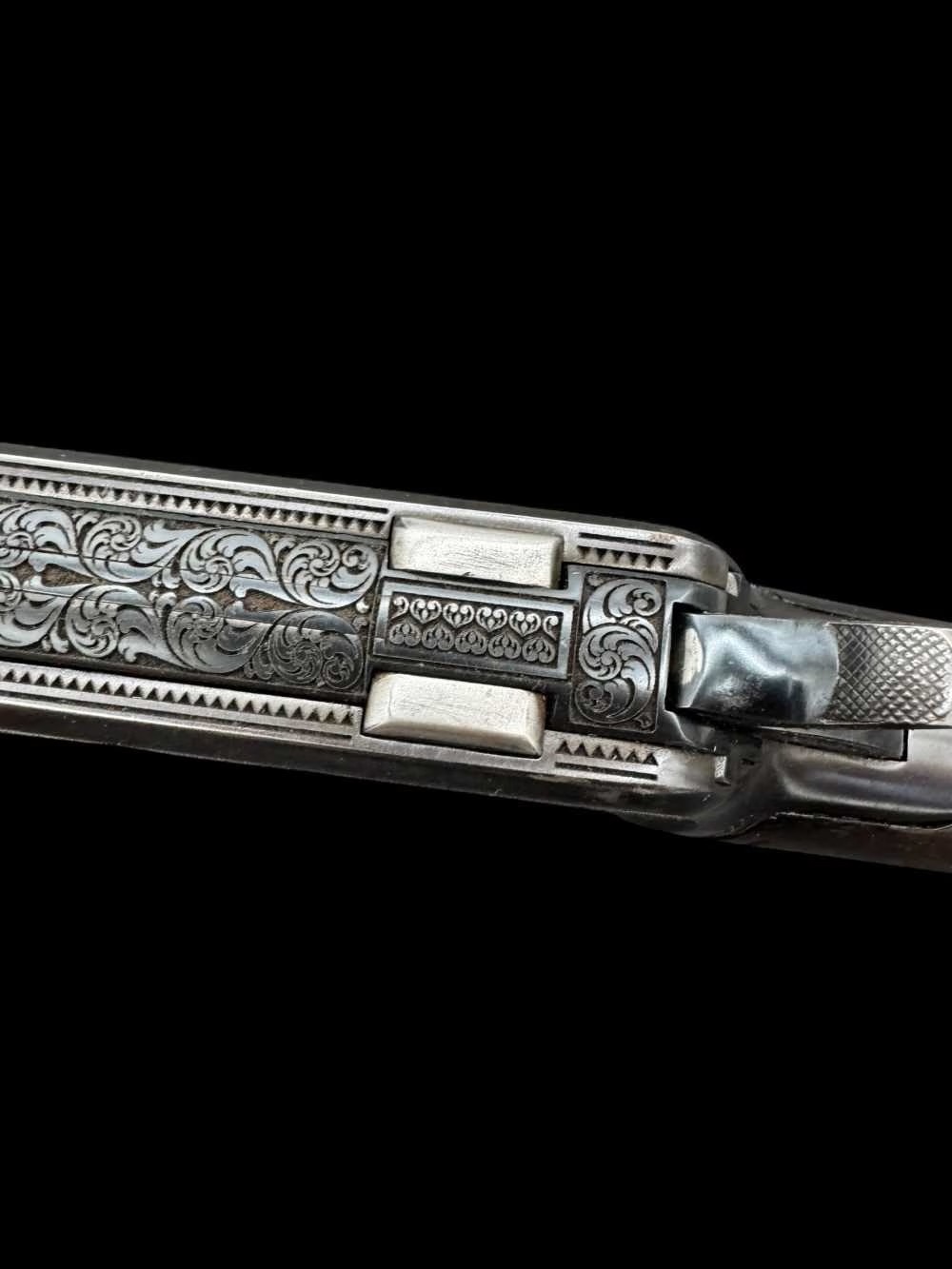 That said……. The gun is not in its original caliber and has a cut down barrel and magazine and not too bad an non original engraving job on it. By the time you add tax, shipping and FFL charges you will be bumping $20,000! for this gun!!!!!!!! I do hope that he by REALLY likes it.