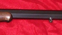 It appears that a dovetail filler has been installed. At some time in the past, a sling-eye was installed on that barrel. Winchester offered two types of sling-eye attachments for the Single Shot rifle barrels (octagon and round barrel). The type for the octagon barrels required a milled dovetail slot on the bottom flat of the barrel. The sling-eye type for the round barrels was a cup that was then silver-soldered to the barrel.