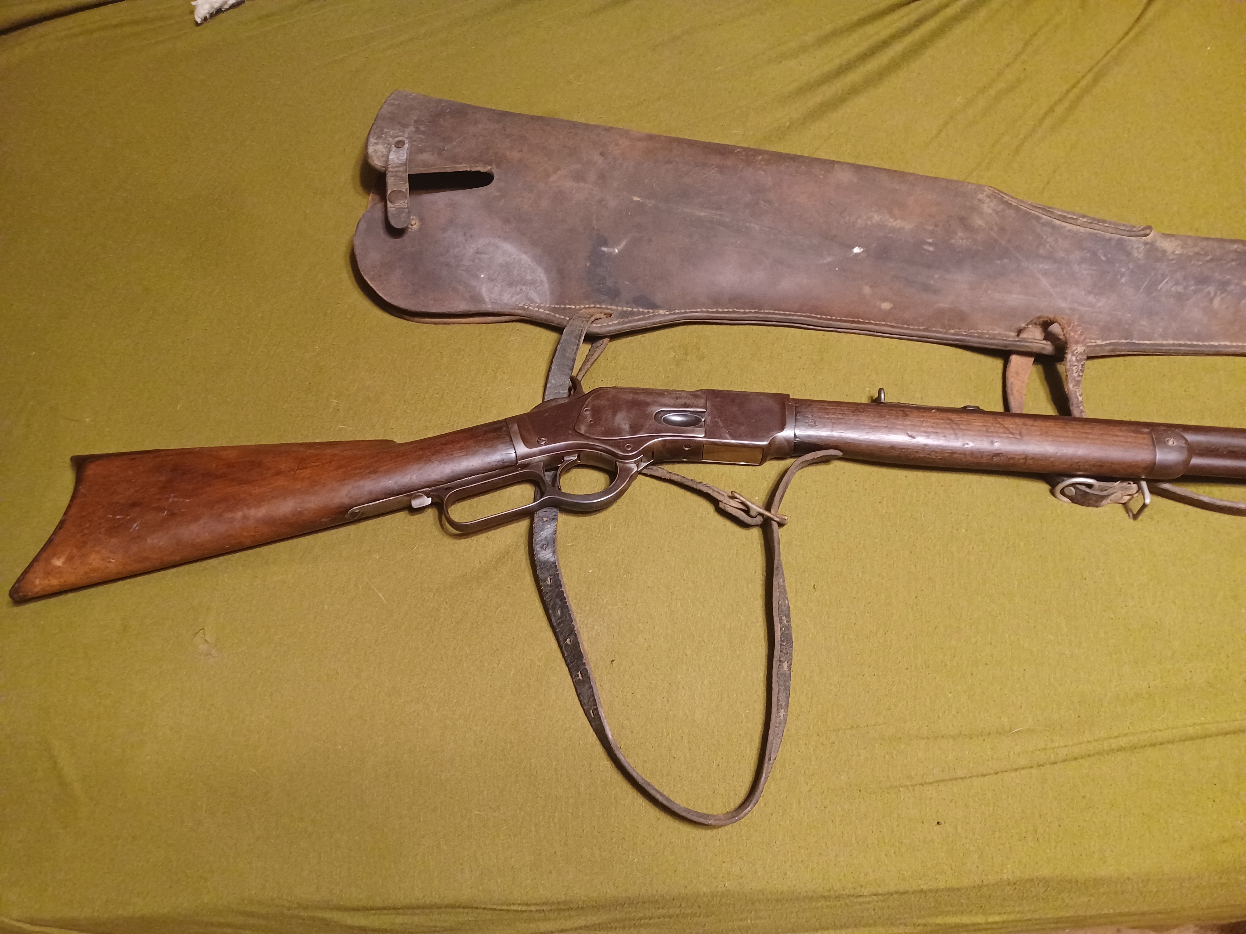 OfflineIt truly is beautiful to me. And it definitely had a life in its early years. All internal parts are there, it is missing the dust cover. I found it at a garage sale. I’ll never forget. The guy said he had a few guns he inherited from his father, he took me into his home and opened a safe, pull out a old bolt action shot gun I took it looked and set it down. Next he pulled out a marlin model 1894. I was holding it when out of the coner of my eye I seen the 73 come out of the safe. Now I’m having to control myself. He told me his dad bought these guns at garage sales in the St. Louis in the 1960s. And never did anything with them. The rifles looked like they had sat around in a closet for the last 90 years. There was also a model 43 spanish mauser In 8 mm. Turns on the mauser is pretty rare. It’s a civilian model in excellent condition. The marlin is 32-20 mfg. 1905. The 73 is 44 mfg.1885