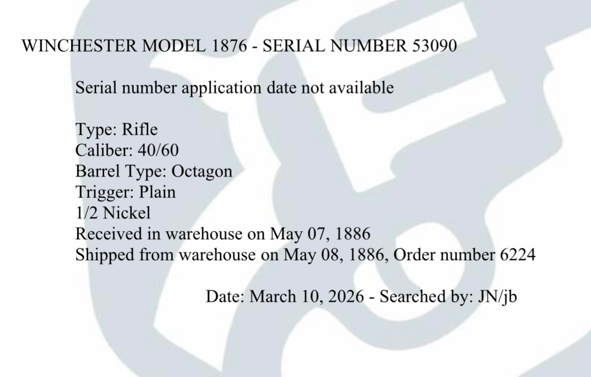little surprise on the serial search for the 76, ordered the 40-60 barrel I found for it, so I guess the lifter is possibly the original one, who knows with these old guns, but since the letter says half nickel and the lower tang matches the rest of the receiver, I assume this is a half nickel receiver?