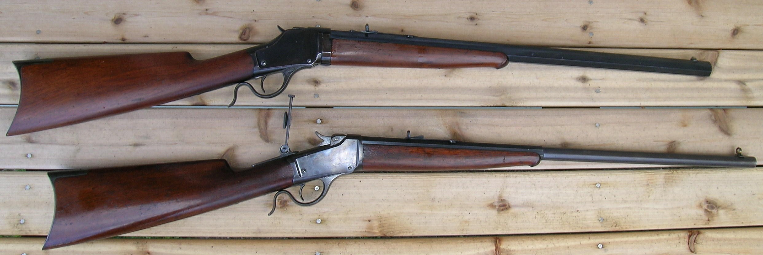 I have a nearly identical (a first variation) low-wall 22 Short, but with a Gold-washed Beach front sight and a Mid-range Vernier tang sight… it surprisingly has a very sharp bore (bottom rifle in the picture below). My BFADM conned me out of the top rifle (a high-wall TD in 22 Short) at a Cody Show a few years back… I had brought it for “show & tell”, but an unnamed somebody (who frequents this forum) decided he just had to own it!Bert