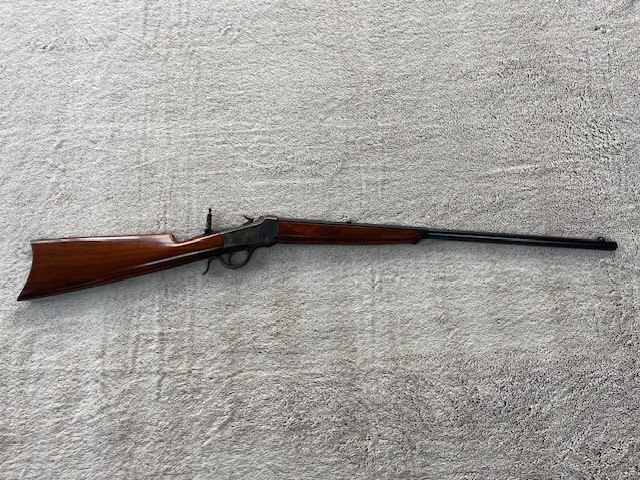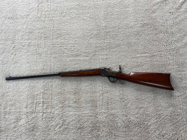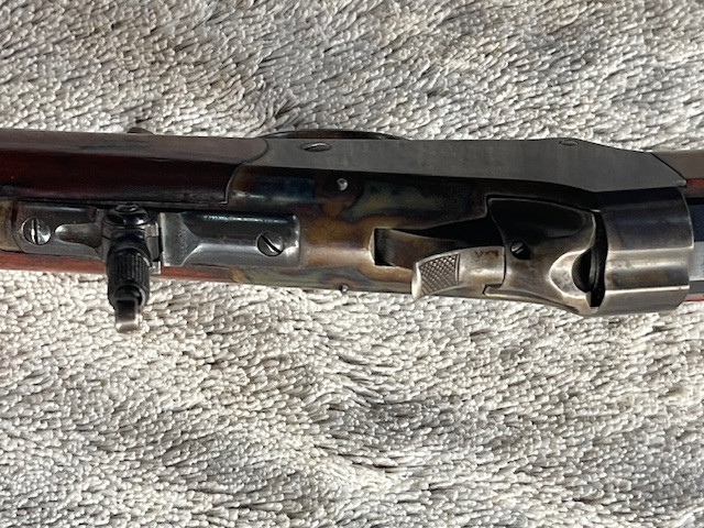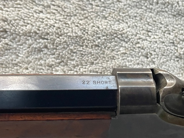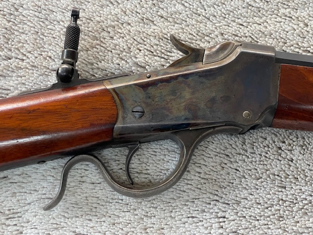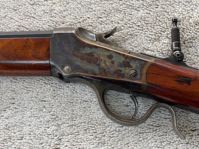 I have a nearly identical (a first variation) low-wall 22 Short, but with a Gold-washed Beach front sight and a Mid-range Vernier tang sight… it surprisingly has a very sharp bore (bottom rifle in the picture below). My BFADM conned me out of the top rifle (a high-wall TD in 22 Short) at a Cody Show a few years back… I had brought it for “show & tell”, but an unnamed somebody (who frequents this forum) decided he just had to own it!